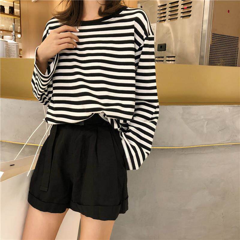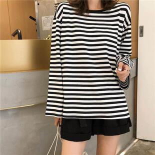 long sleeve Loose 宽松休闲条纹长袖 striped shirt T恤 casual