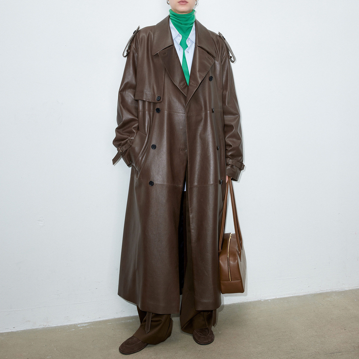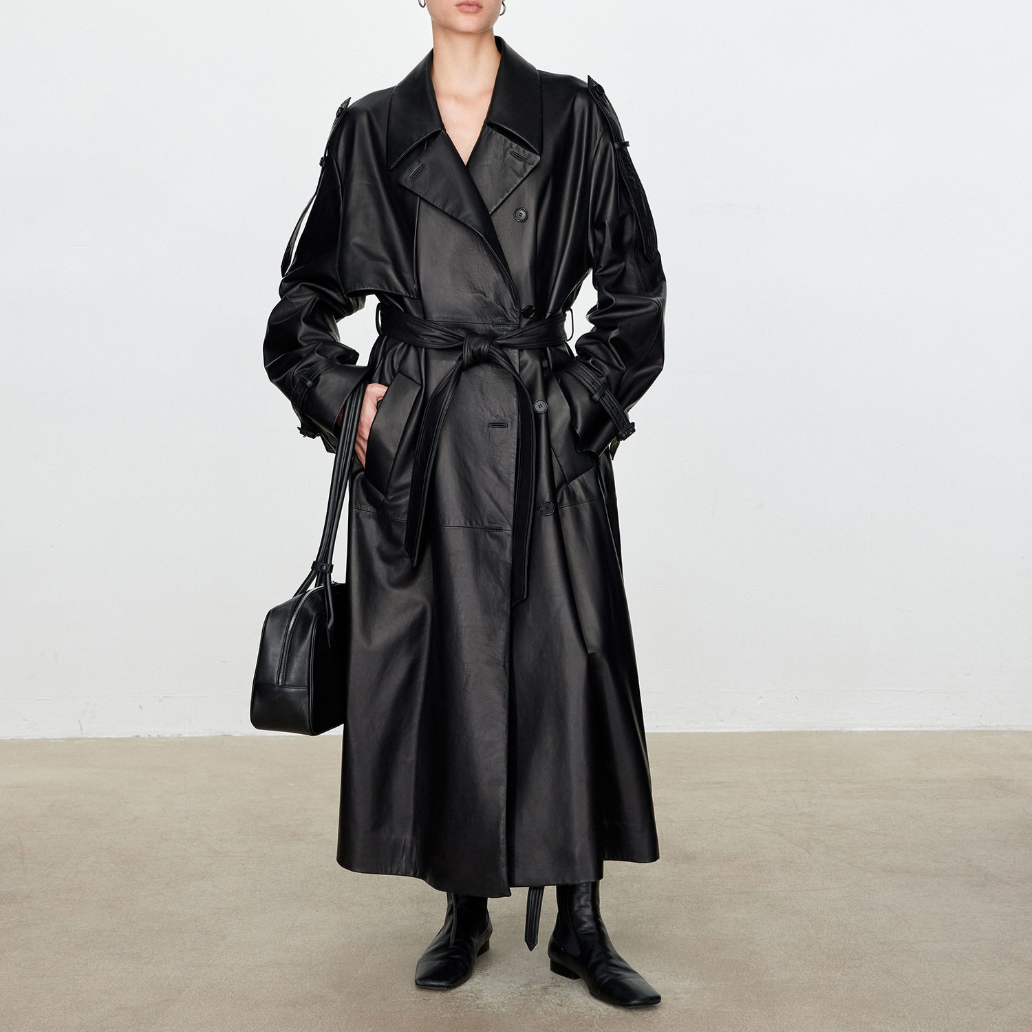 今年流行特惠真皮皮衣HN3251秋冬新款 绵羊皮大翻领廓形宽松双排扣