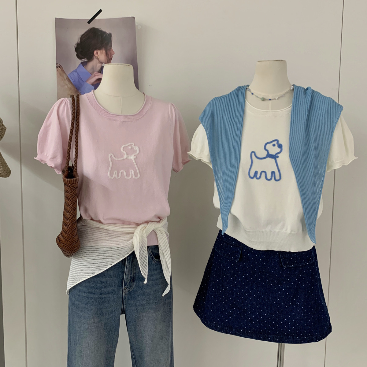 云朵家夏上新夏日小清新减龄氛围感刺绣狗狗针织衫 3189s 配披肩