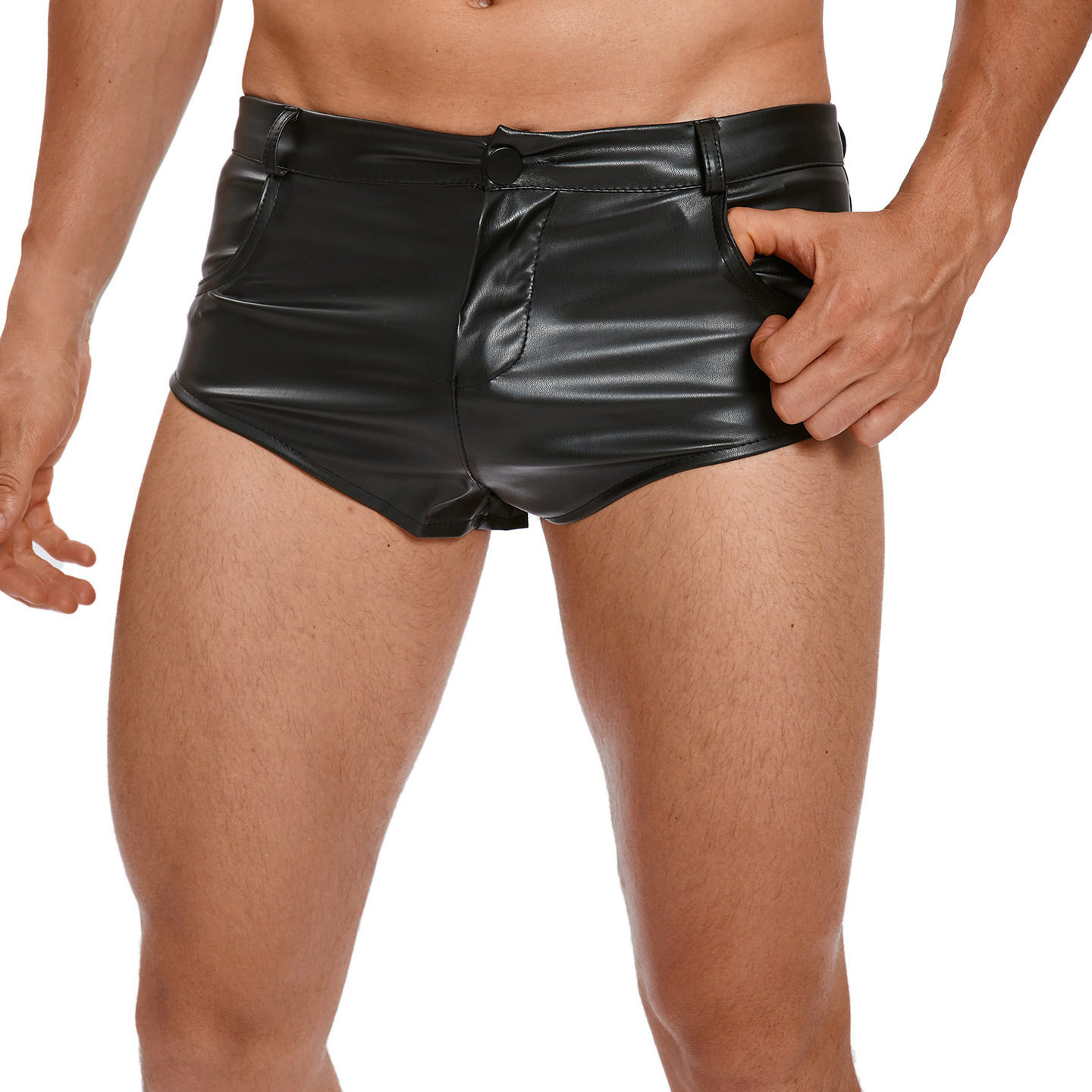 大佬低腰超短裤 伪娘女装 紧身弹力PU皮裤 夜店酒吧gogo领舞性感男士