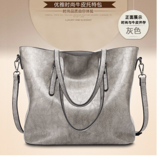 潮女包气质单肩包 时尚 爆款 油蜡皮手提大包简约托特包2023新款