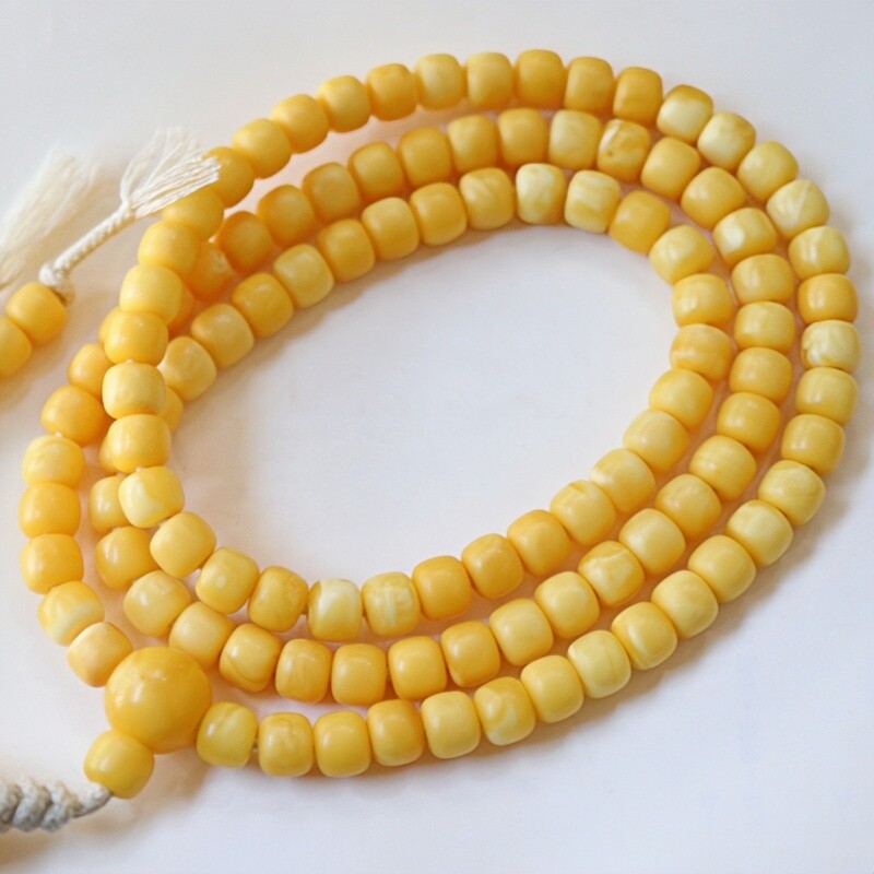 正品 天然俄料精品小年份老蜡蜜蜡8.5mm老型108颗念珠文玩珠宝饰品