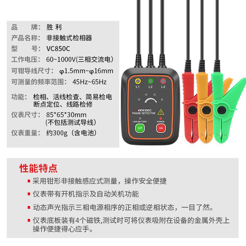 胜利仪器相位表正品 VC850A三相电相位检测仪850D相位计相序测试仪