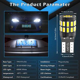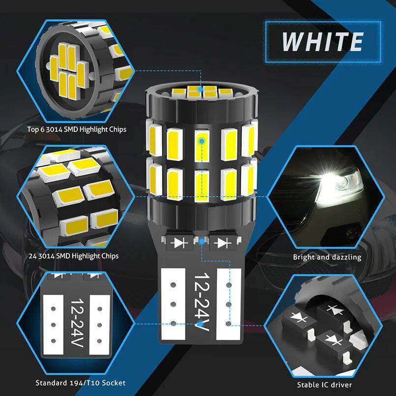 168 T10 bulb 2pcs 3014 Led 30SMD W5W Whi Canbus Error 194