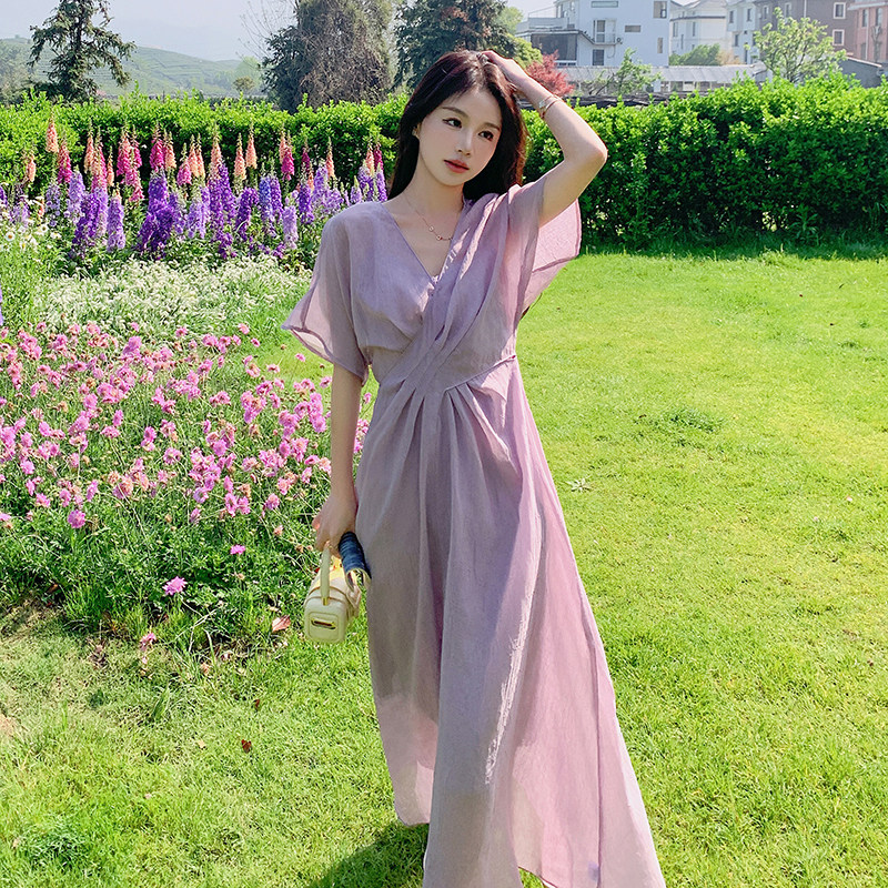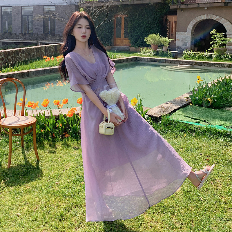 连衣裙 V领烟熏紫两件套 2C122 8822 K218 夏款 P140 首发