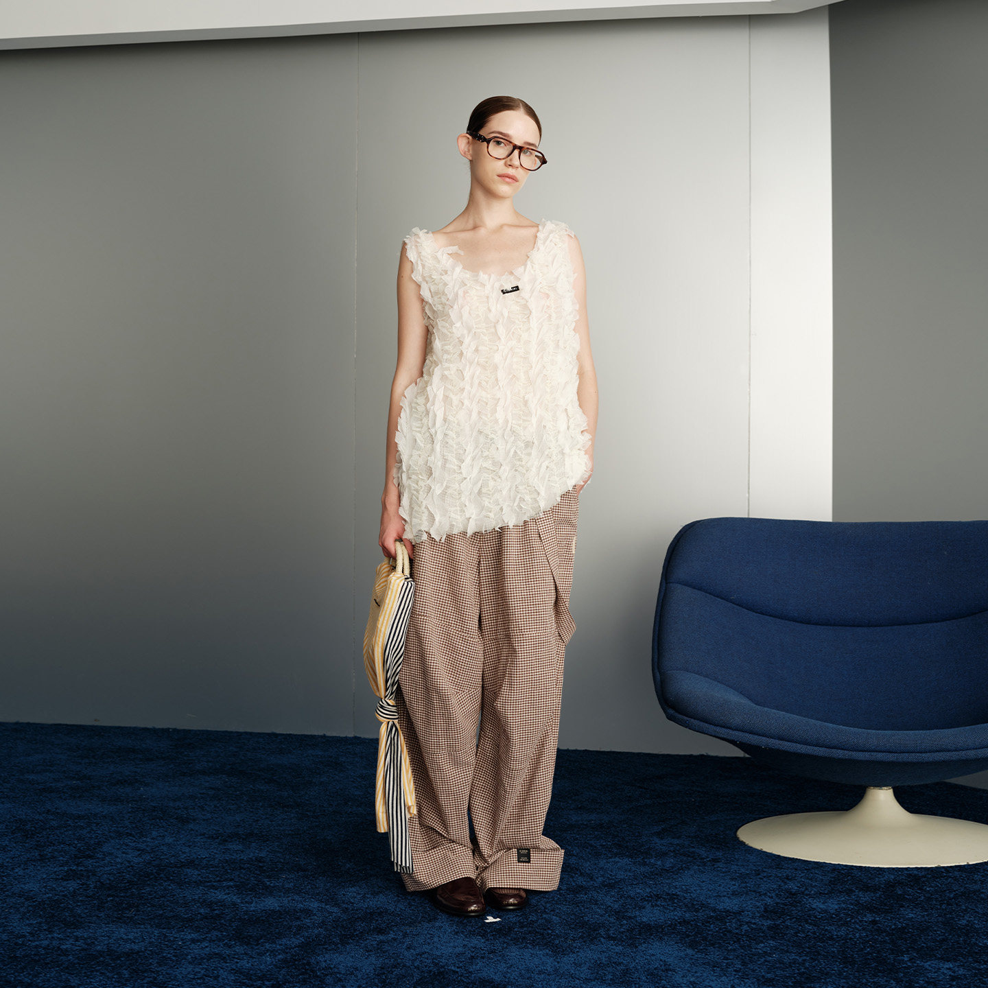 格纹阔腿裤 纯棉复古格子休闲背带裤 OIIORIRI 女2026春夏 新品