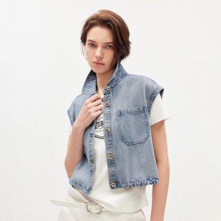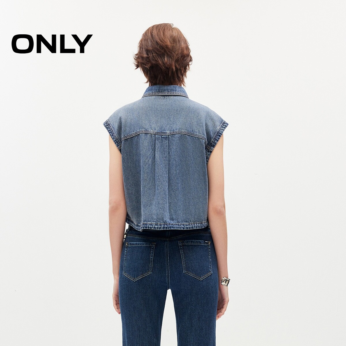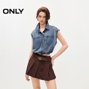 ONLY2026春季 含莱赛尔面料舒适箱型宽松翻领牛仔马甲上衣女 新款