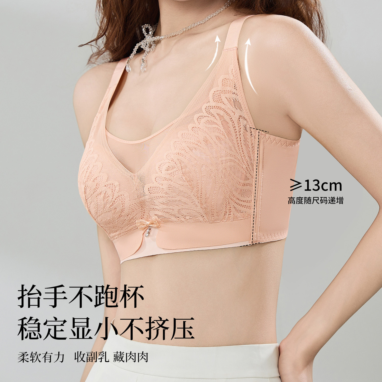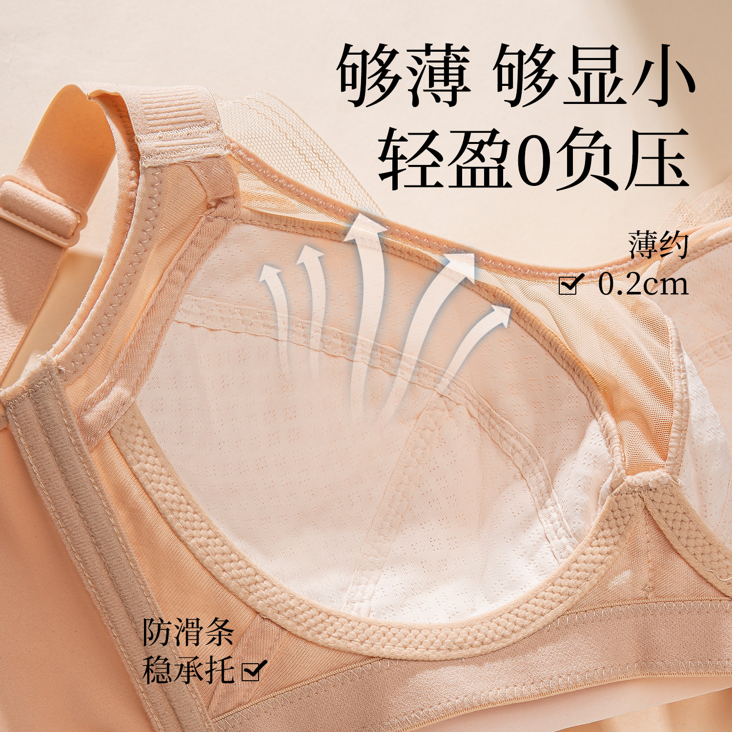 无钢圈调整型文胸罩 美思内衣女大胸显小收副乳全罩杯薄款 清凝