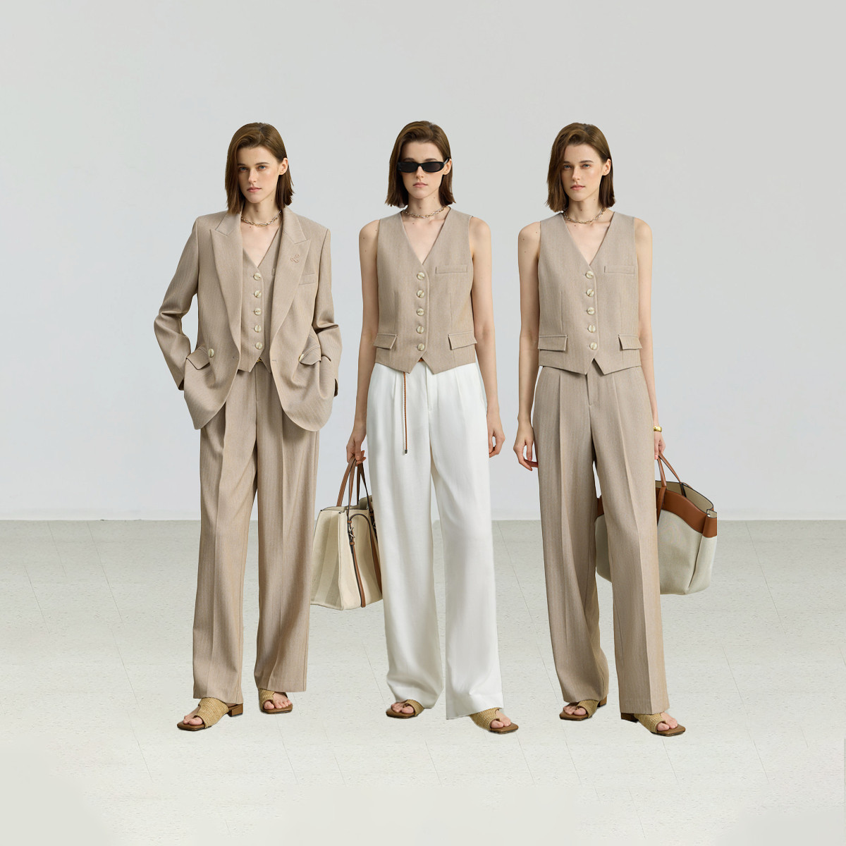 所有女生 马夹 衣橱直播间 巧克力色西装 长裤 LILY卡其色