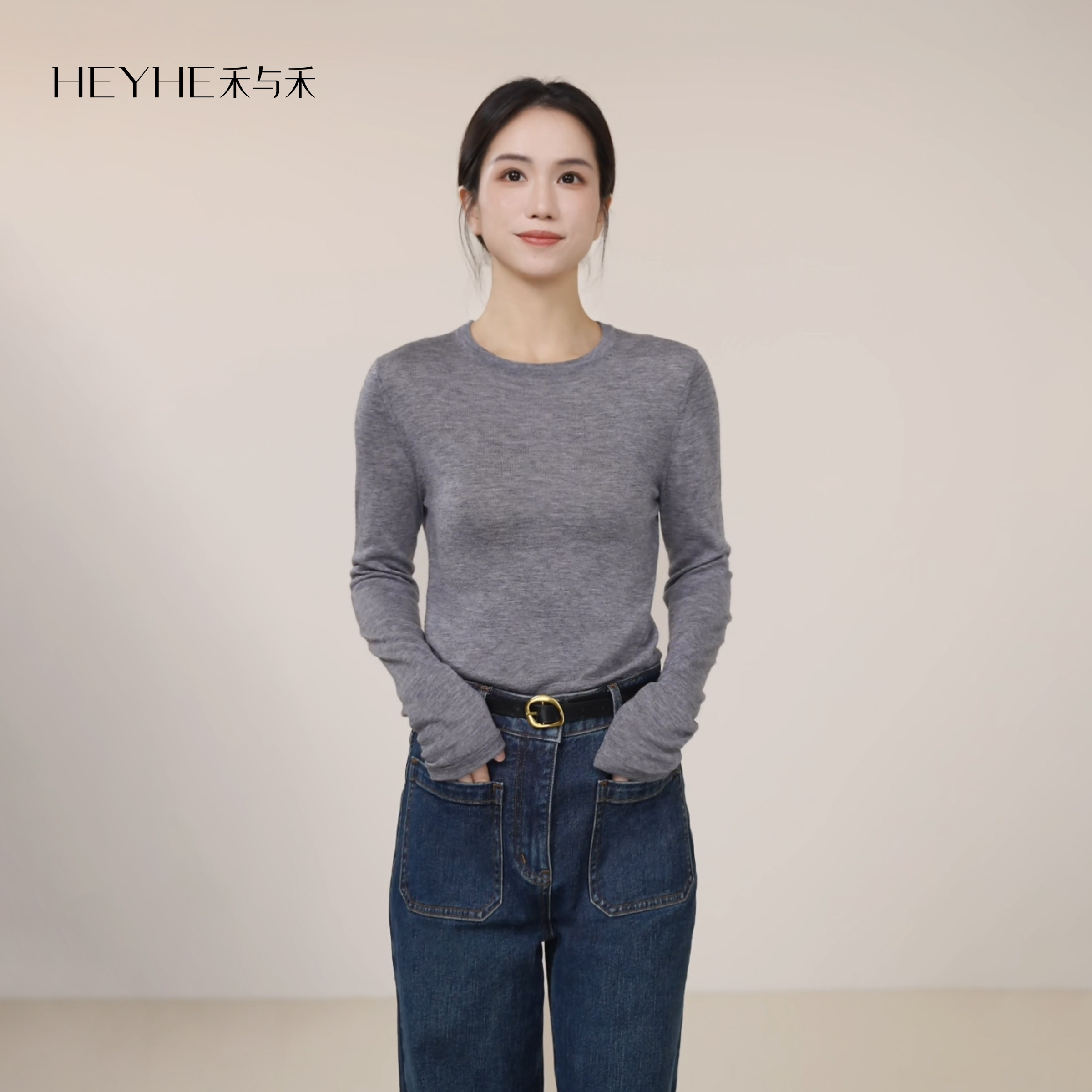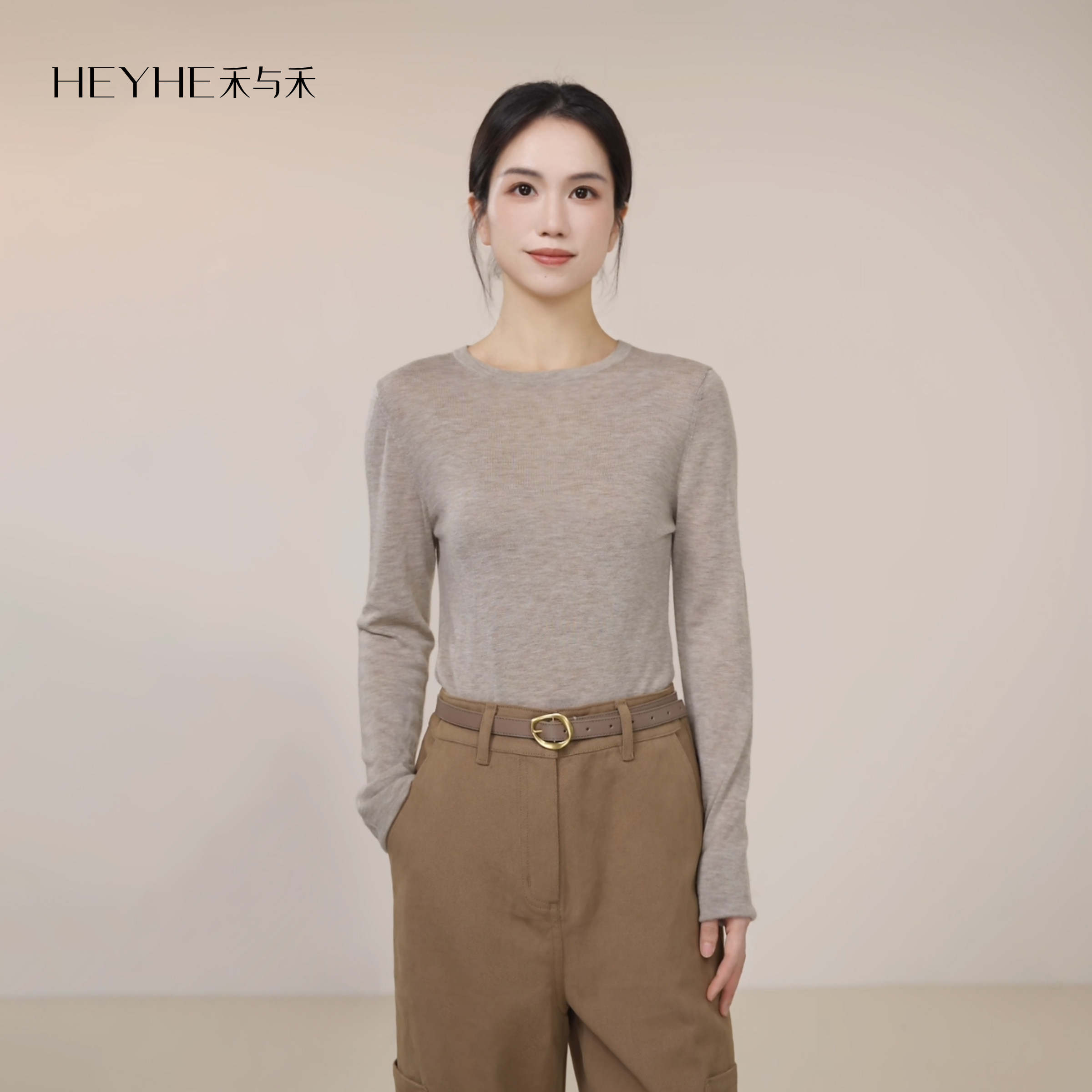 长袖 简约纯色圆领舒适柔软打底上衣薄款 针织T恤 云柔长袖 小禾