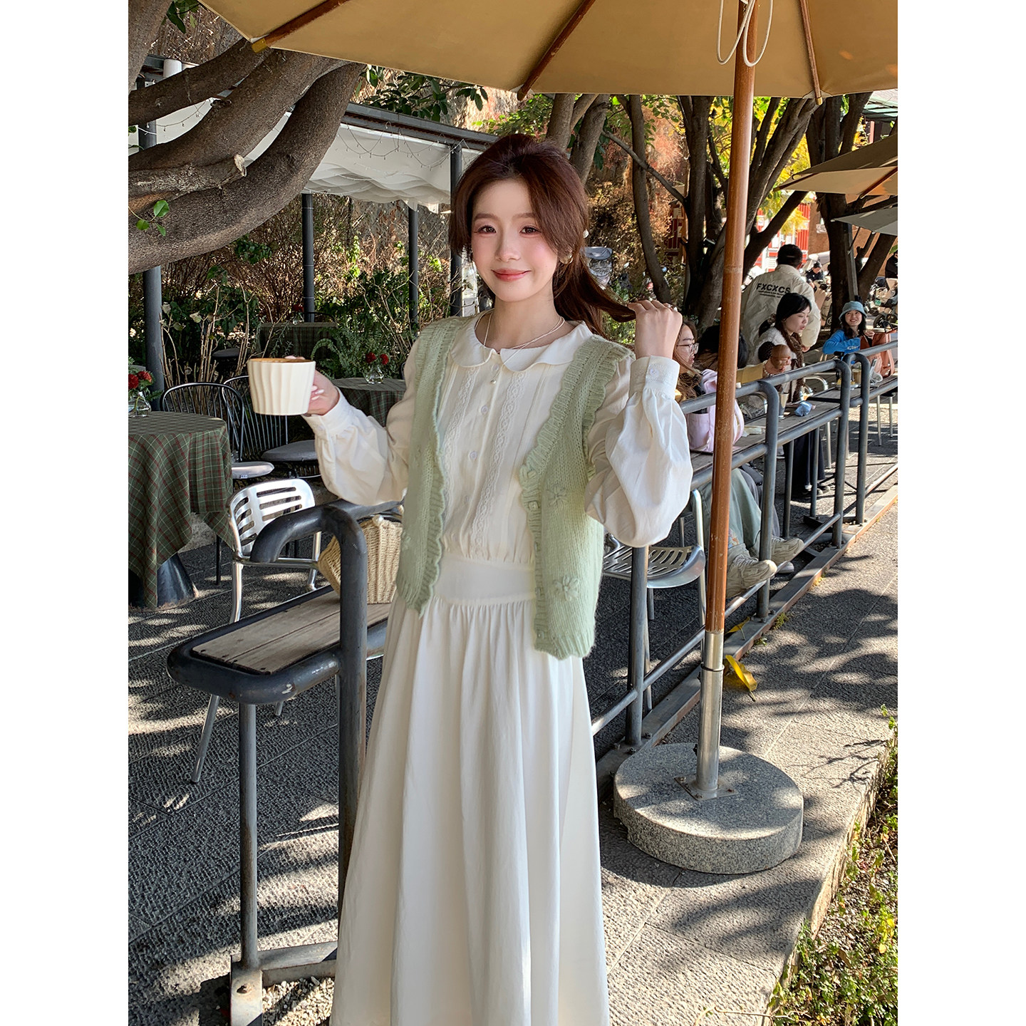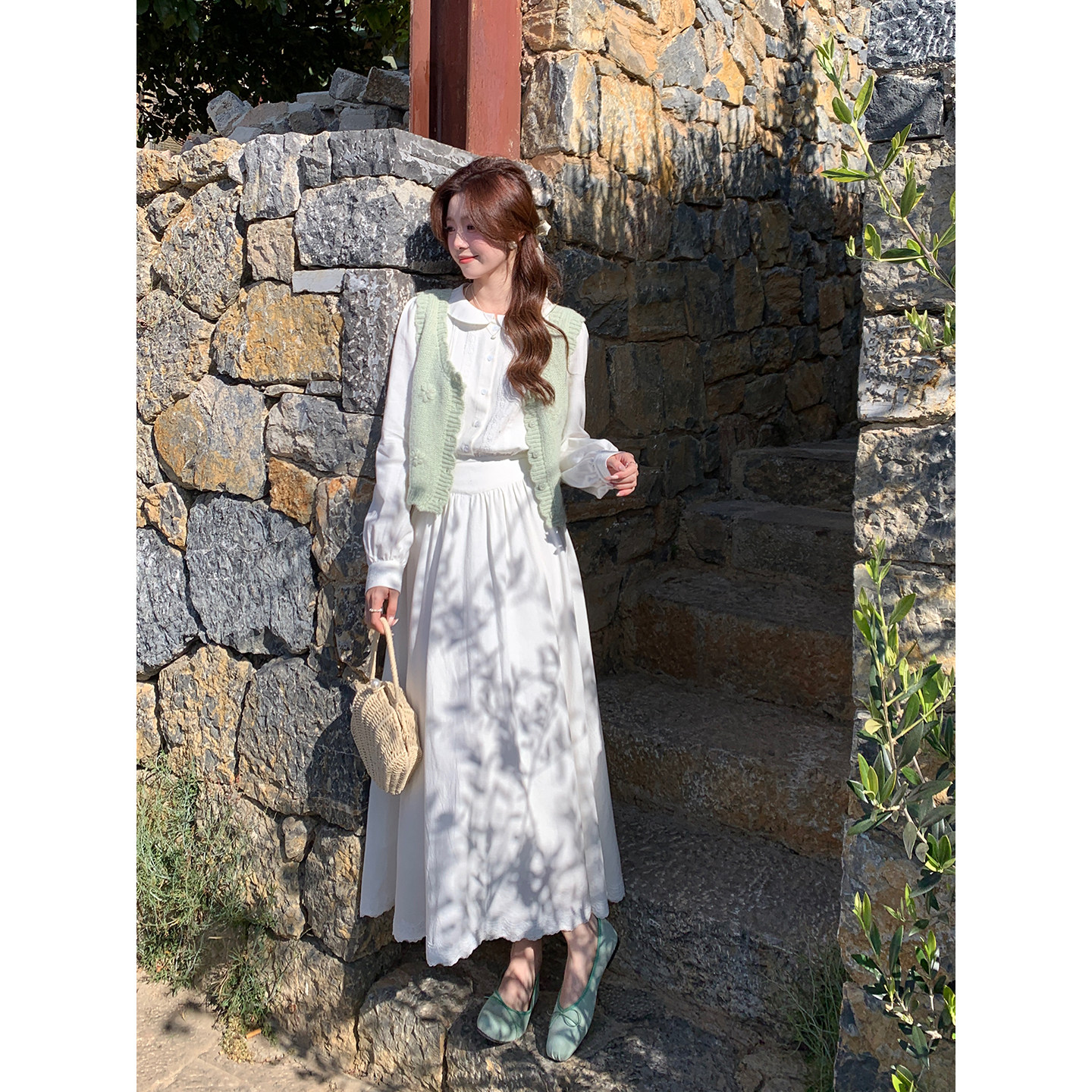 Even一雯 韩系高智精致甜美感连衣裙刺绣温柔收腰长裙 月下赋诗