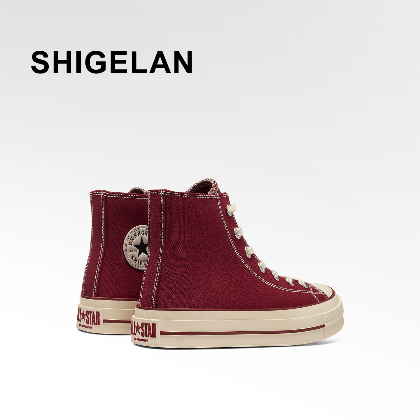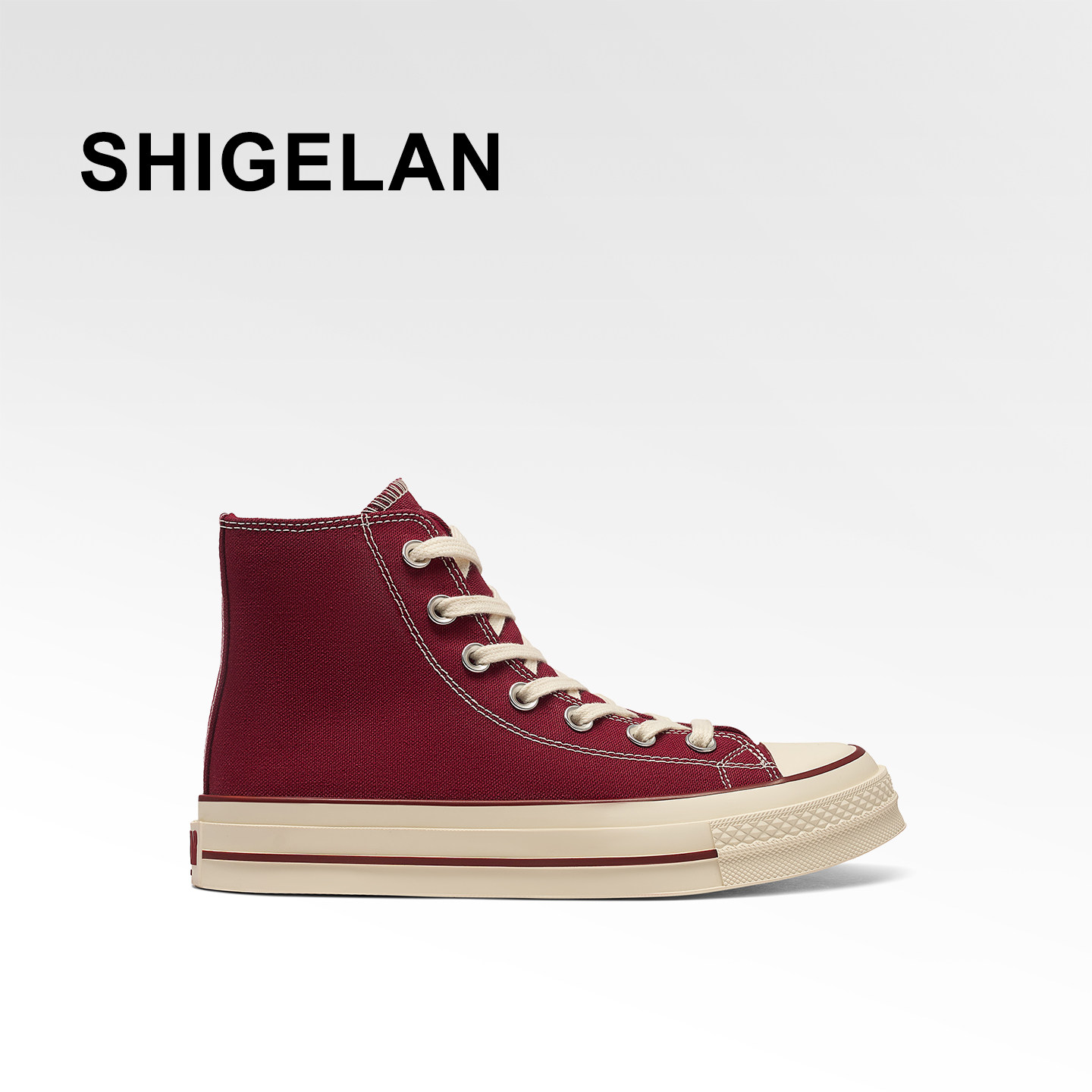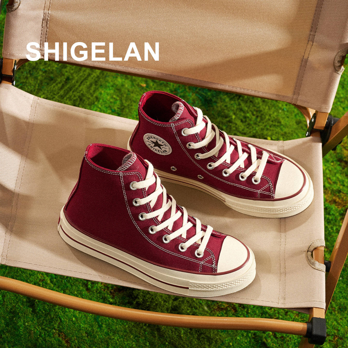 复古女鞋 诗歌兰2026新款 透气板鞋 酒红色系带休闲运动鞋 高帮帆布鞋