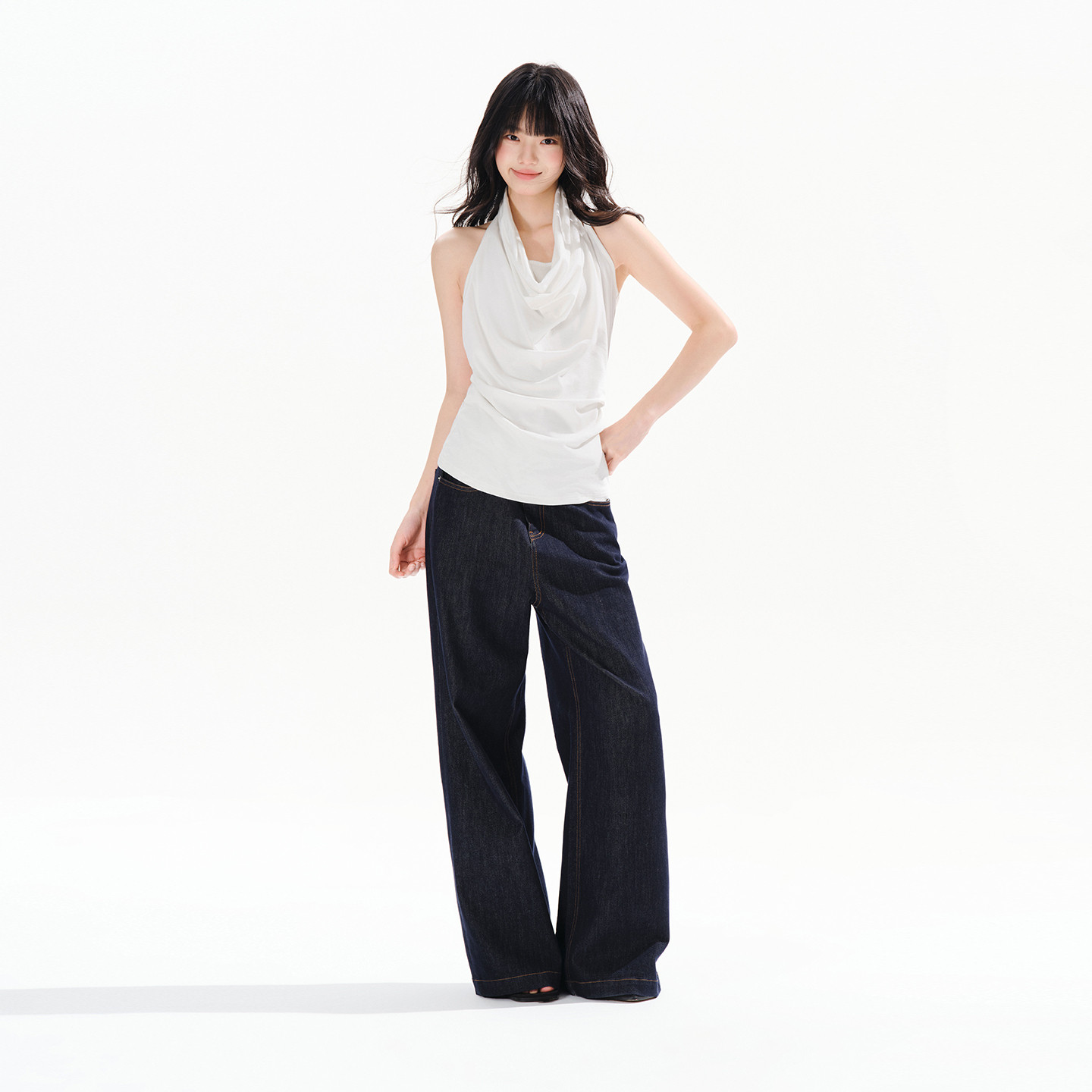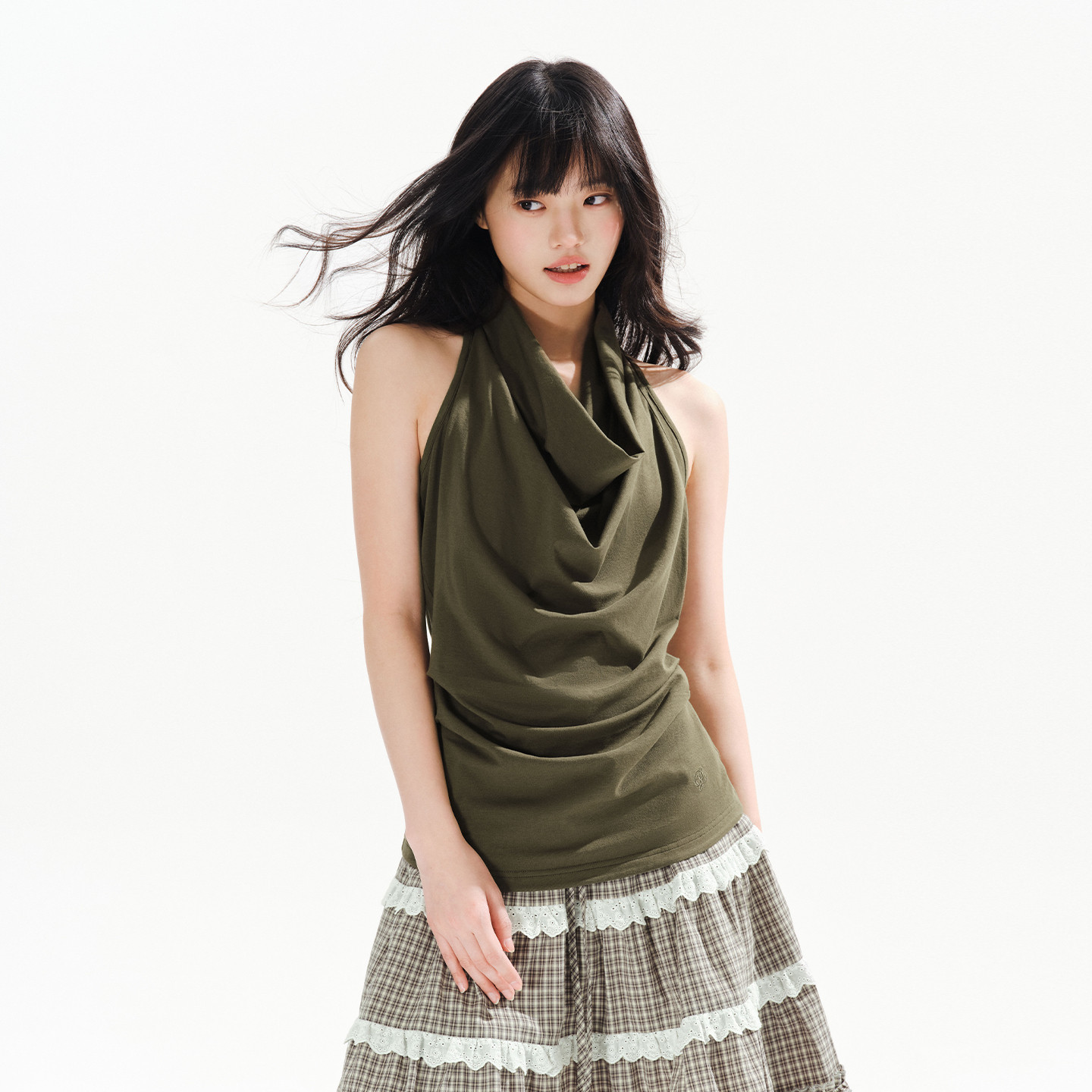 假两件荡领黑色挂脖上衣设计感收腰工字背心女夏季 PSO Brand女装