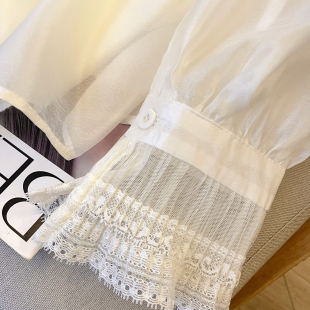 气质穿搭泡泡袖 小C家 春法式 女2026新款 上衣 系带蕾丝娃娃领雪纺衫