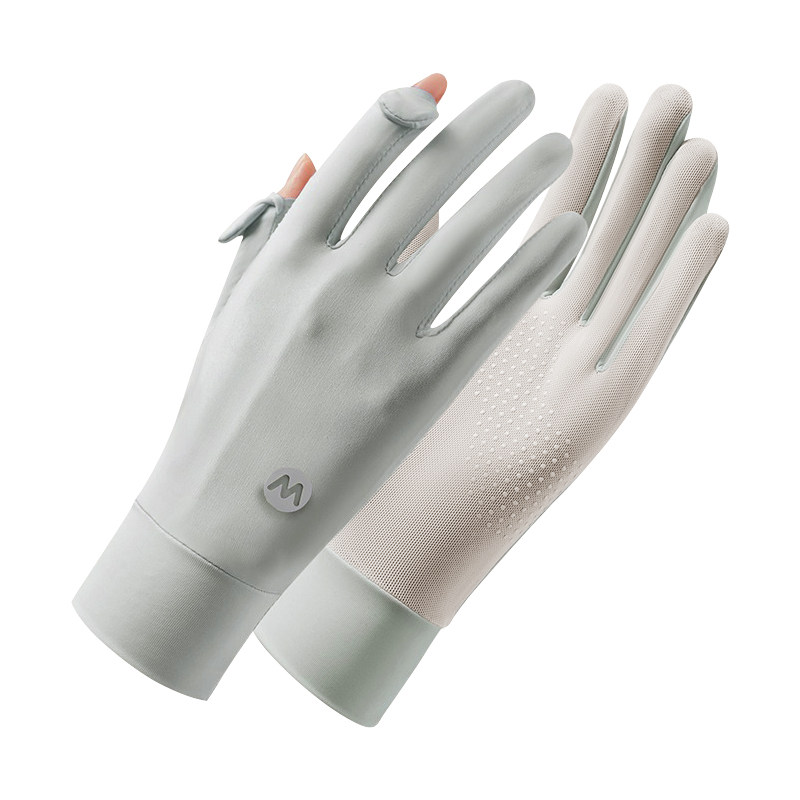 防紫外线透气骑行防滑触屏女士露指加长 夏季 冰丝防晒手套女款 薄款