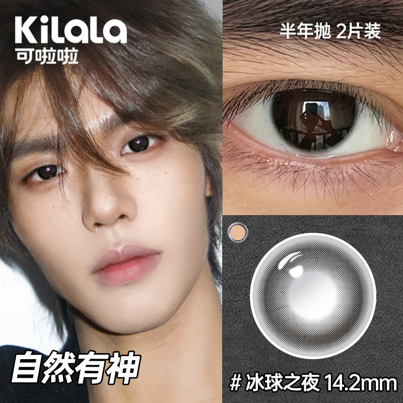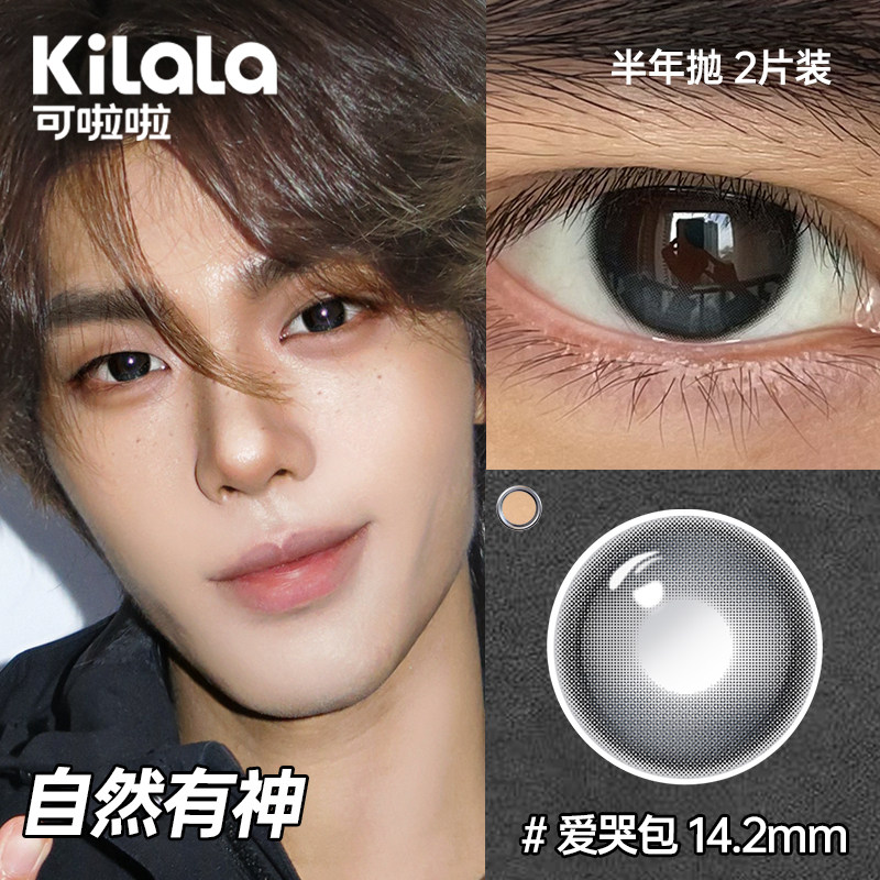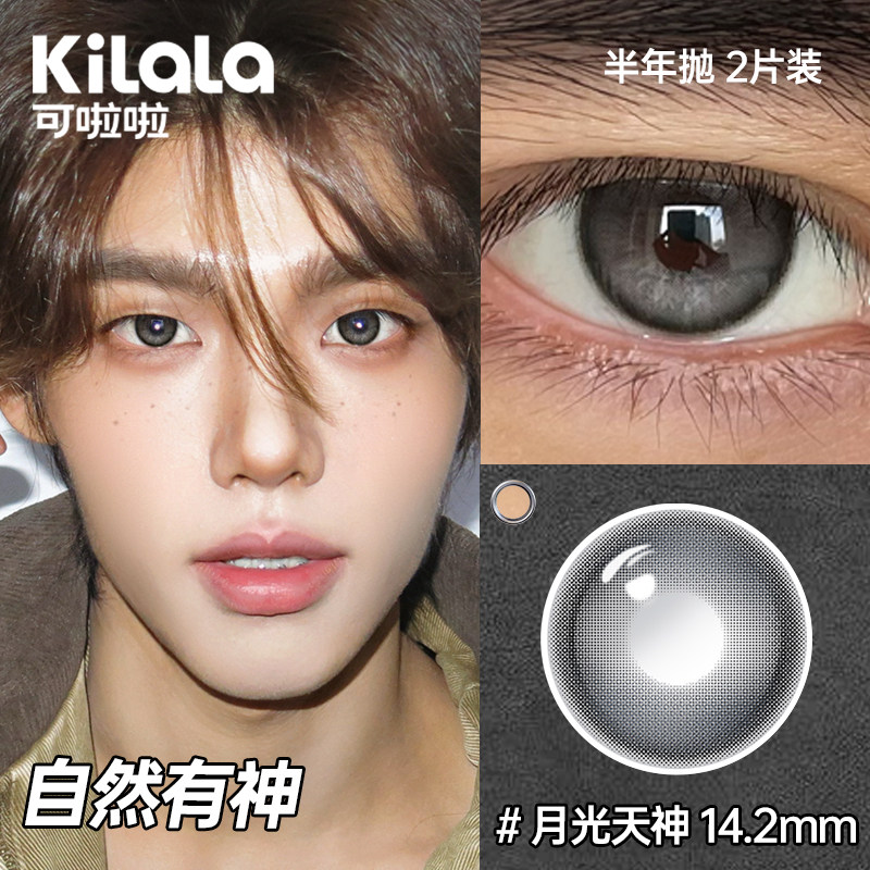 可啦啦男士 隐形眼镜男自然小直径亮眸通勤送护理液 半年抛美瞳男款