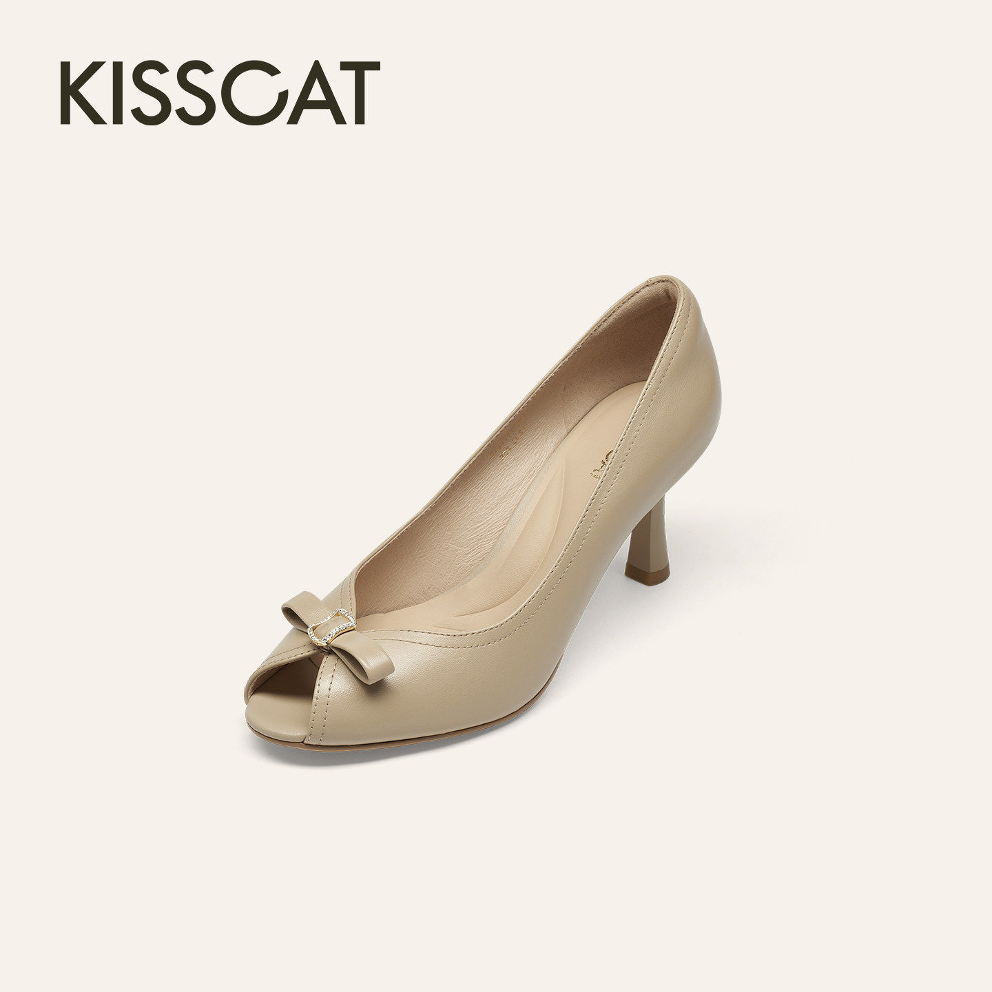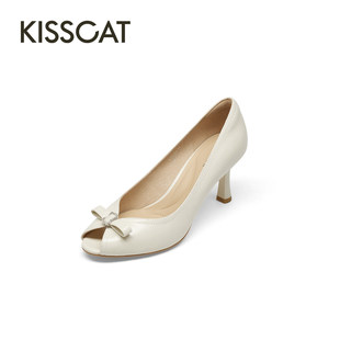 K76115A 通勤百搭浅口单鞋 时尚 KISSCAT接吻猫2026春优雅鱼嘴鞋