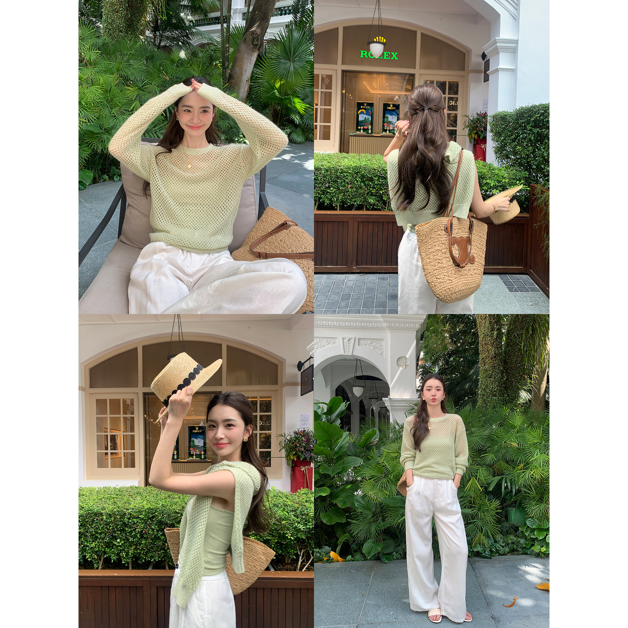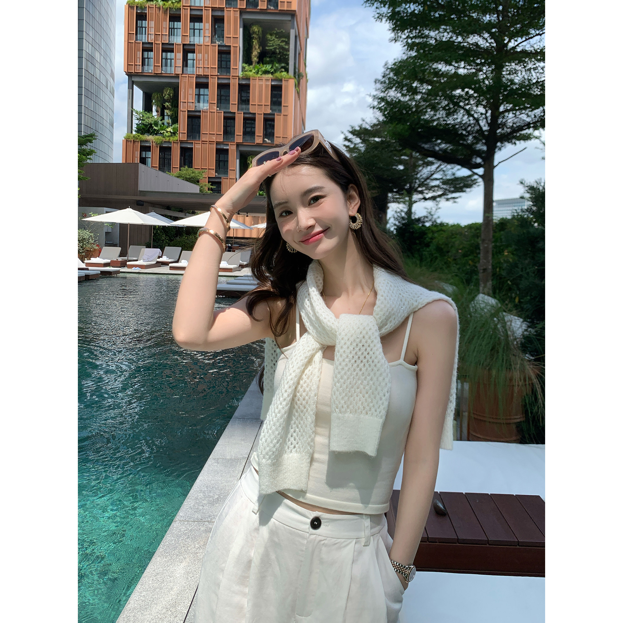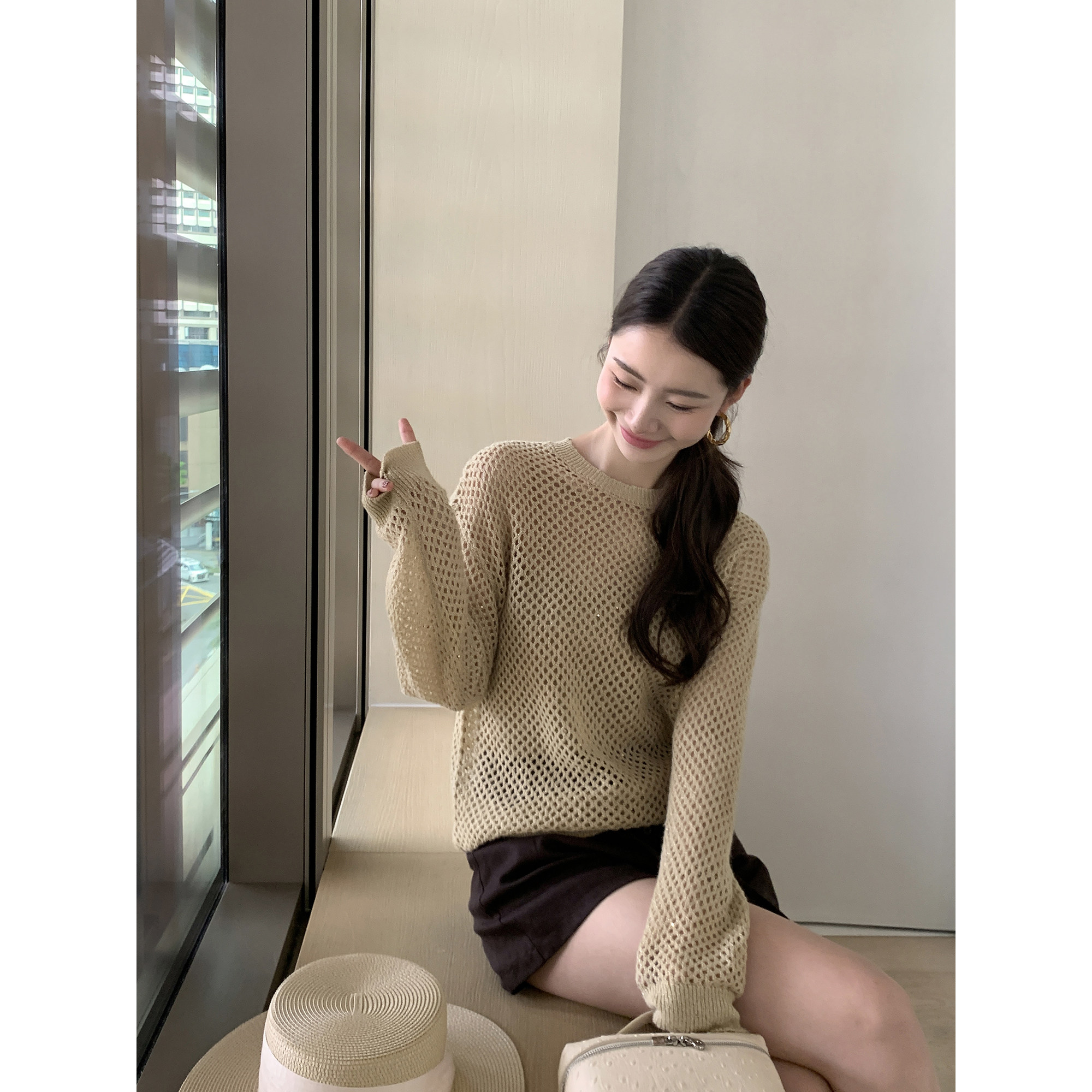 女宽松罩衫 圆领镂空针织衫 上衣吊带背心两件套 松弛随性 pusumede