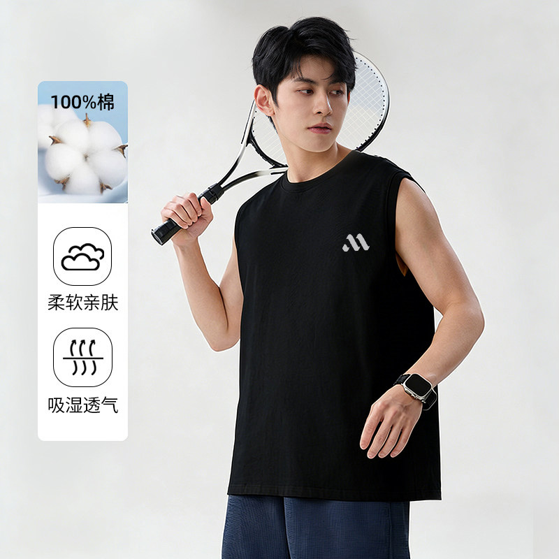 男士 重磅纯棉宽松坎肩跑步健身无袖 t恤Y 新款 班尼路运动背心男夏季