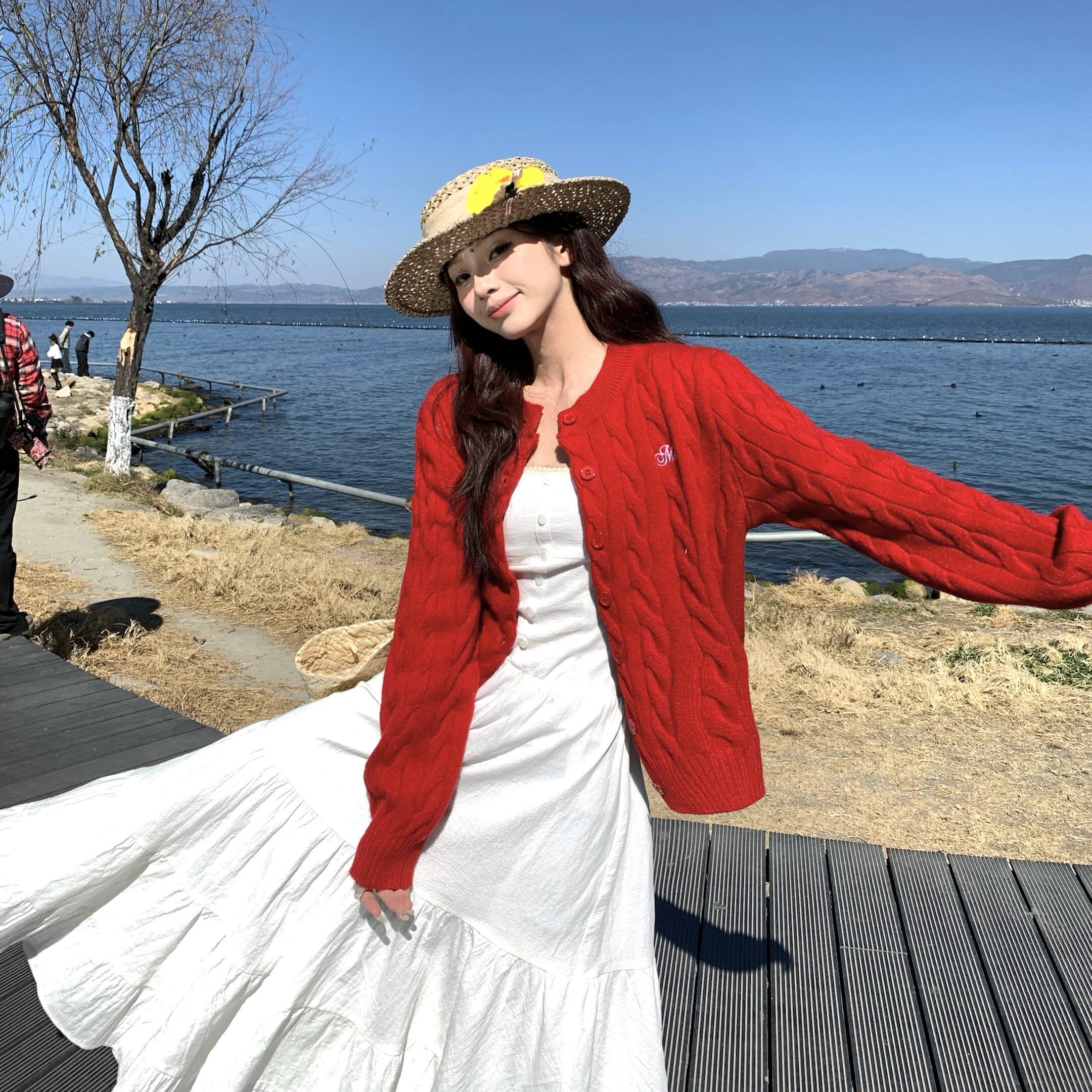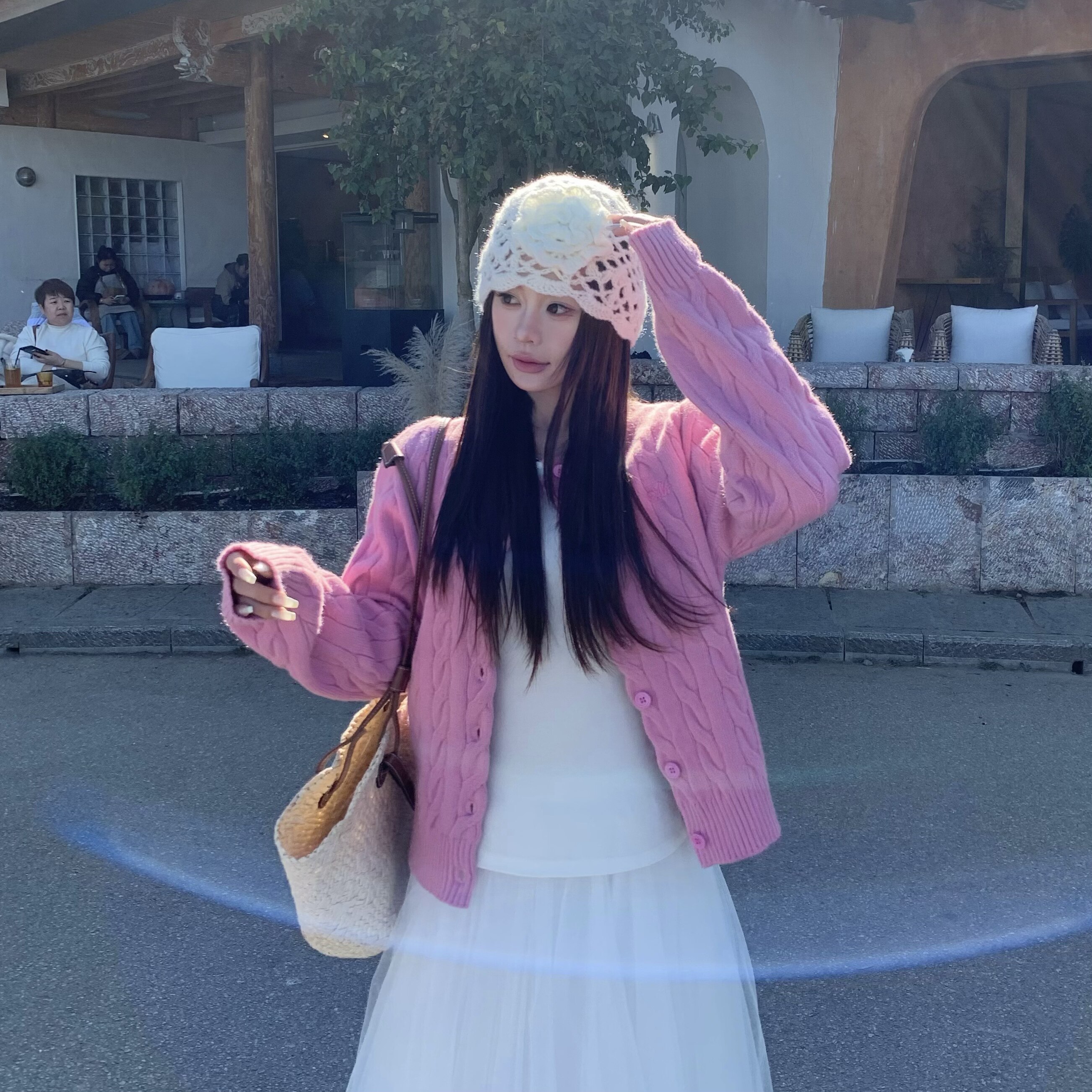 上衣 韩系慵懒毛衣长袖 3MER哦哦三妹彩色系麻花针织开衫 外套女春季