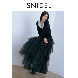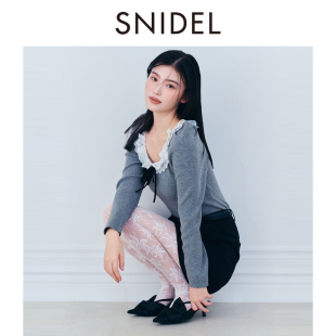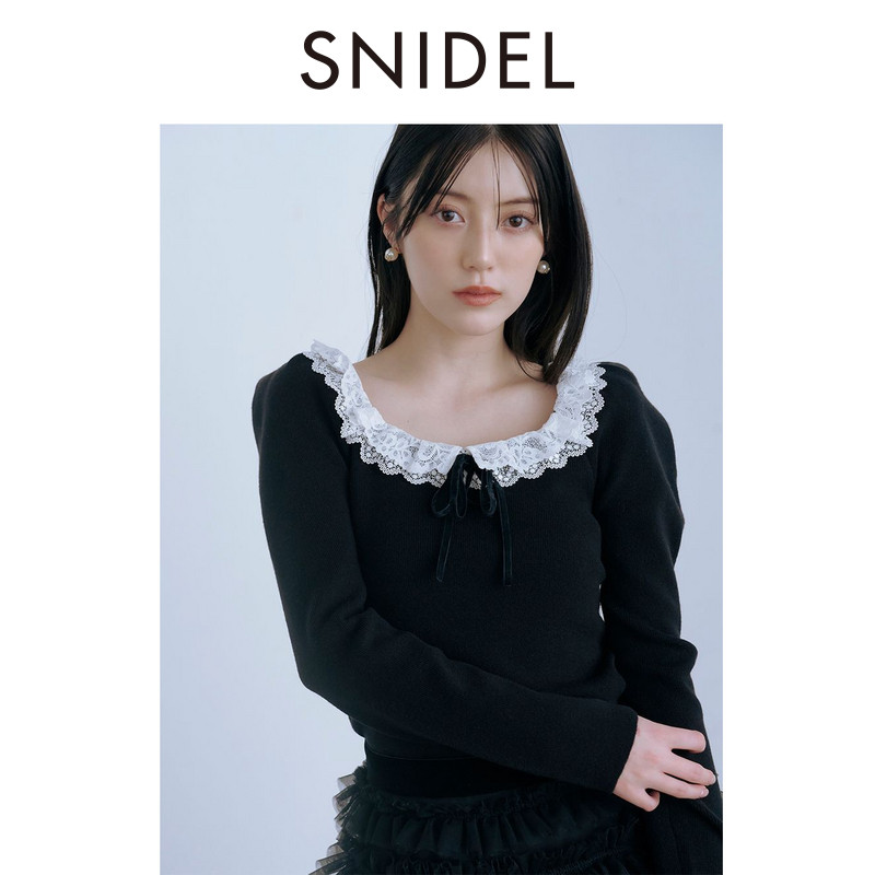 上衣SWNT261332 针织衫 SNIDEL2026春夏新品 优雅蕾丝边系带方领长袖