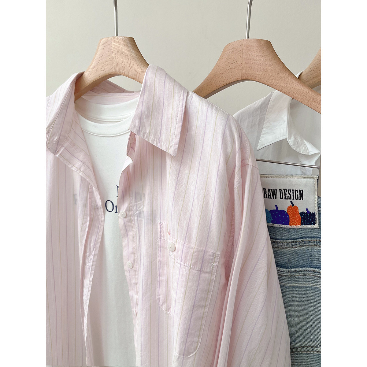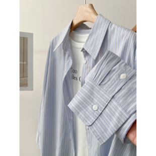 单排扣中长款 纯棉松弛感翻领条纹衬衫 长袖 新款 叠穿百搭上衣 女春季