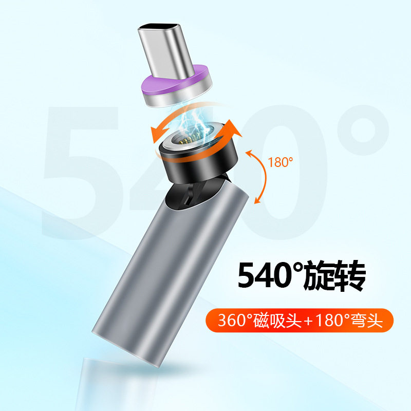 17磁力转换器接口 c安卓lightning三合一磁吸转接头适用华为苹果iPhone14 540度旋转超级快充type
