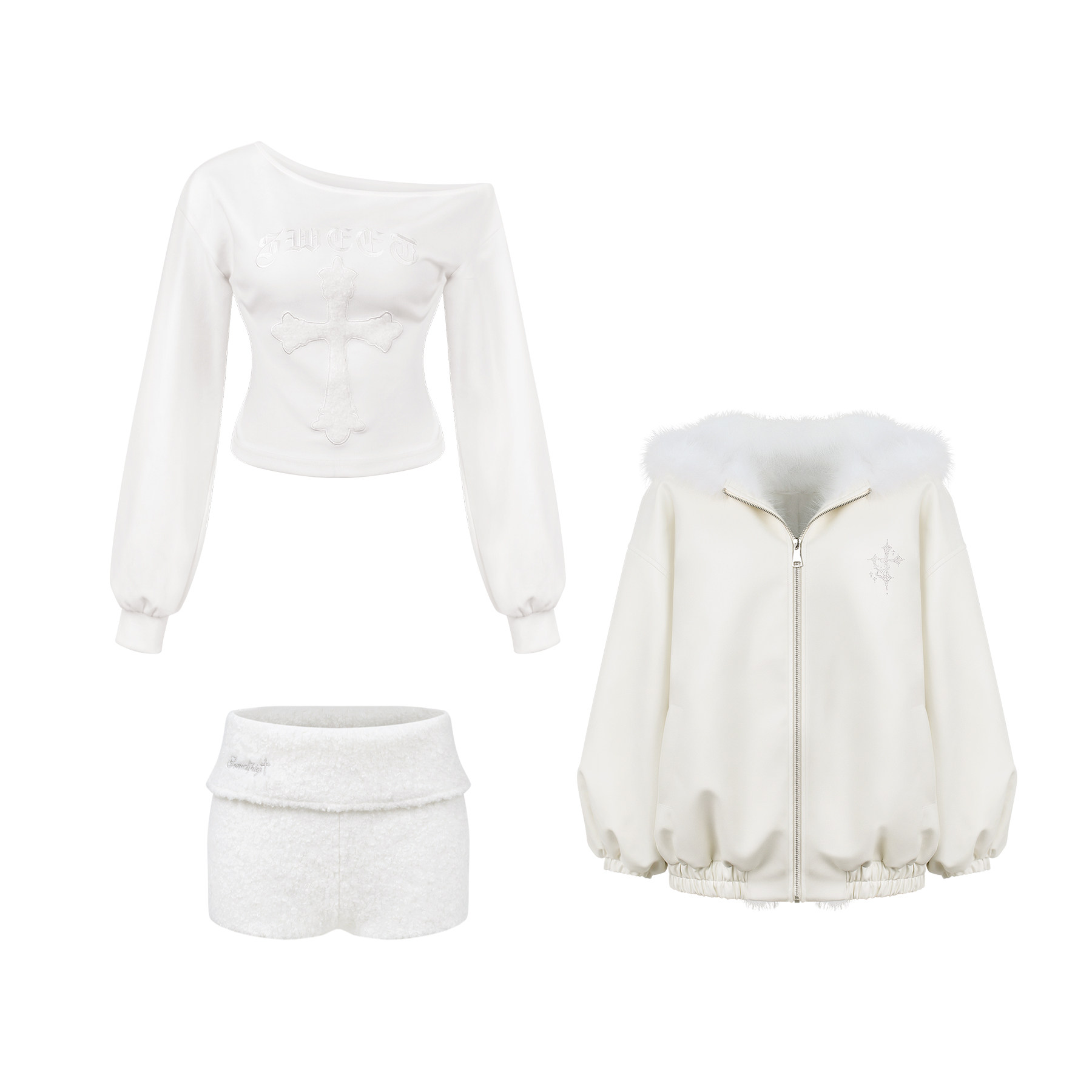 白色短裤 少女椰子 春白色斜肩上衣 十字梦境 白皮外套 日常系