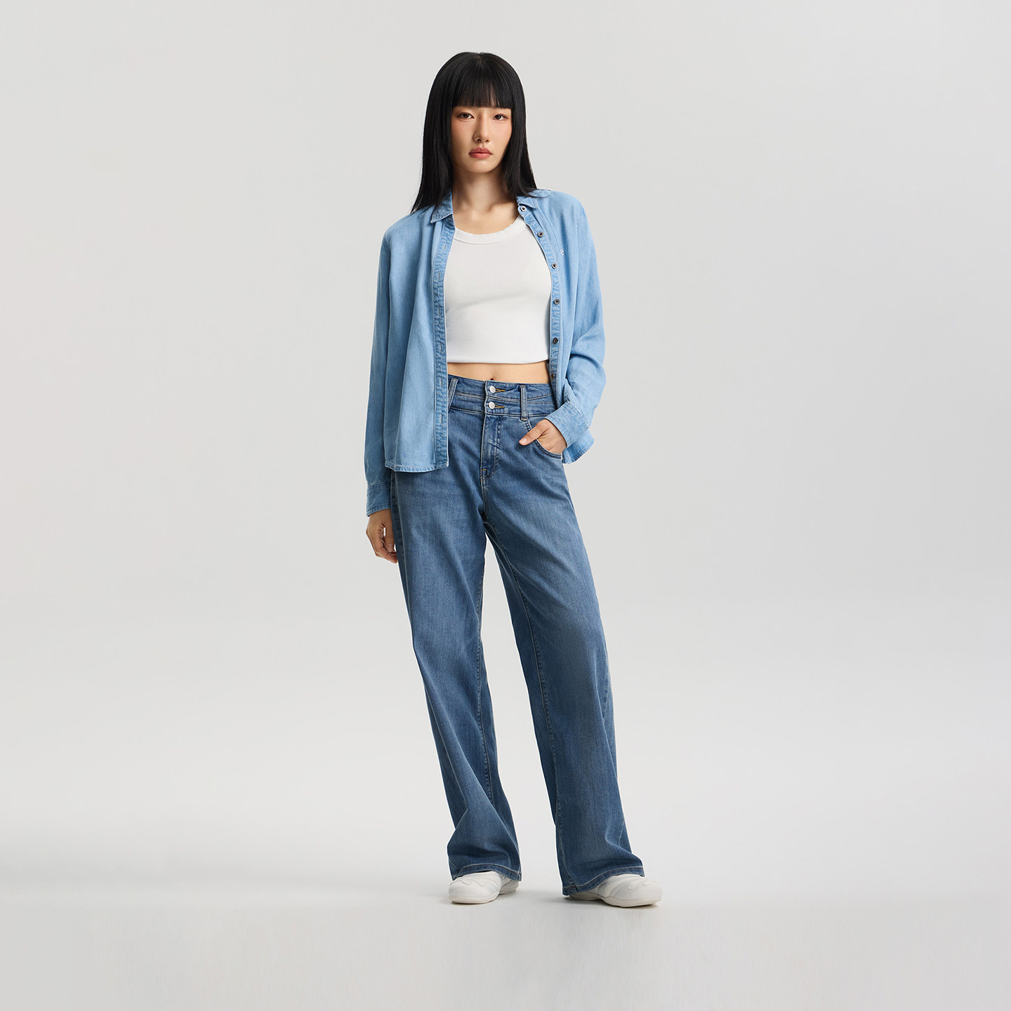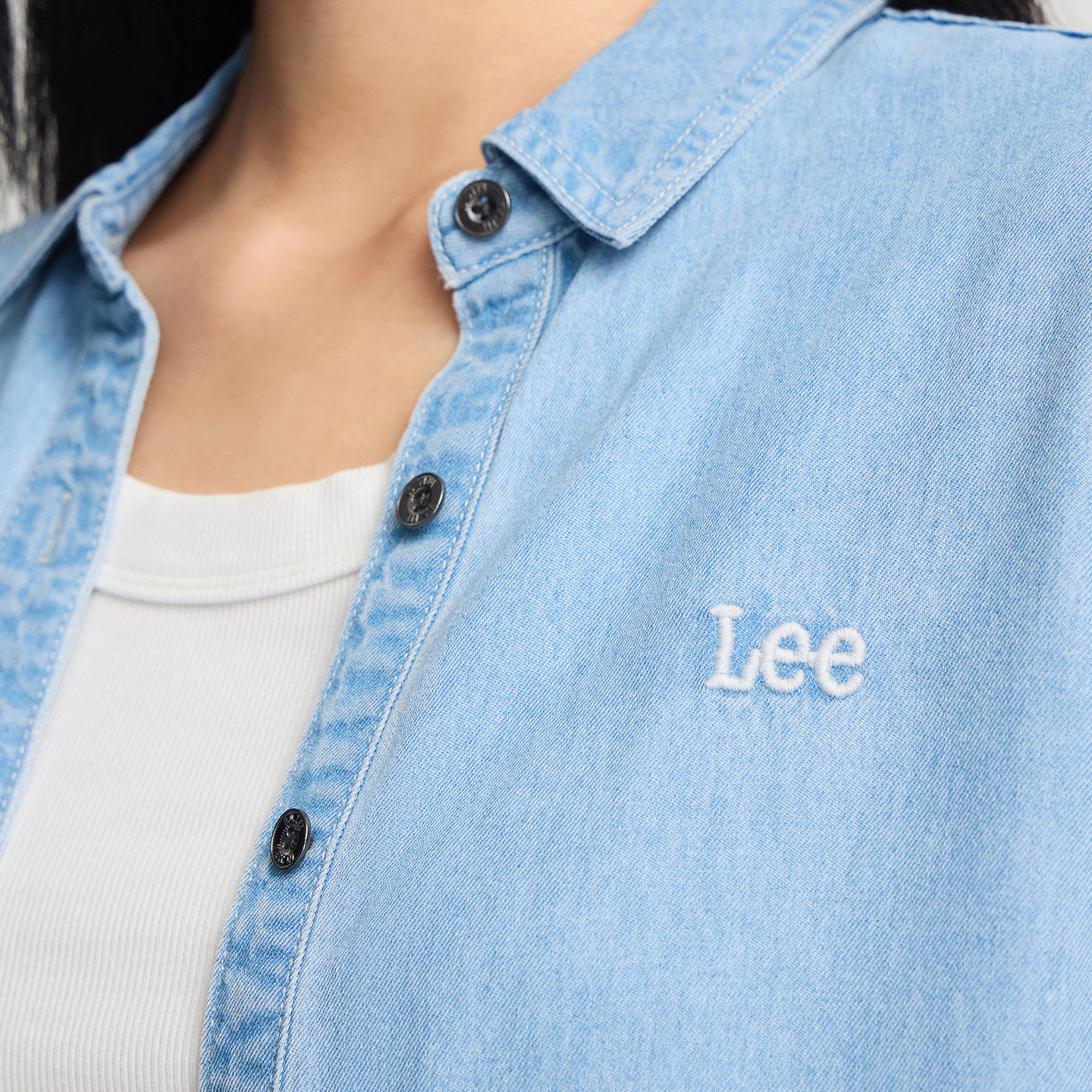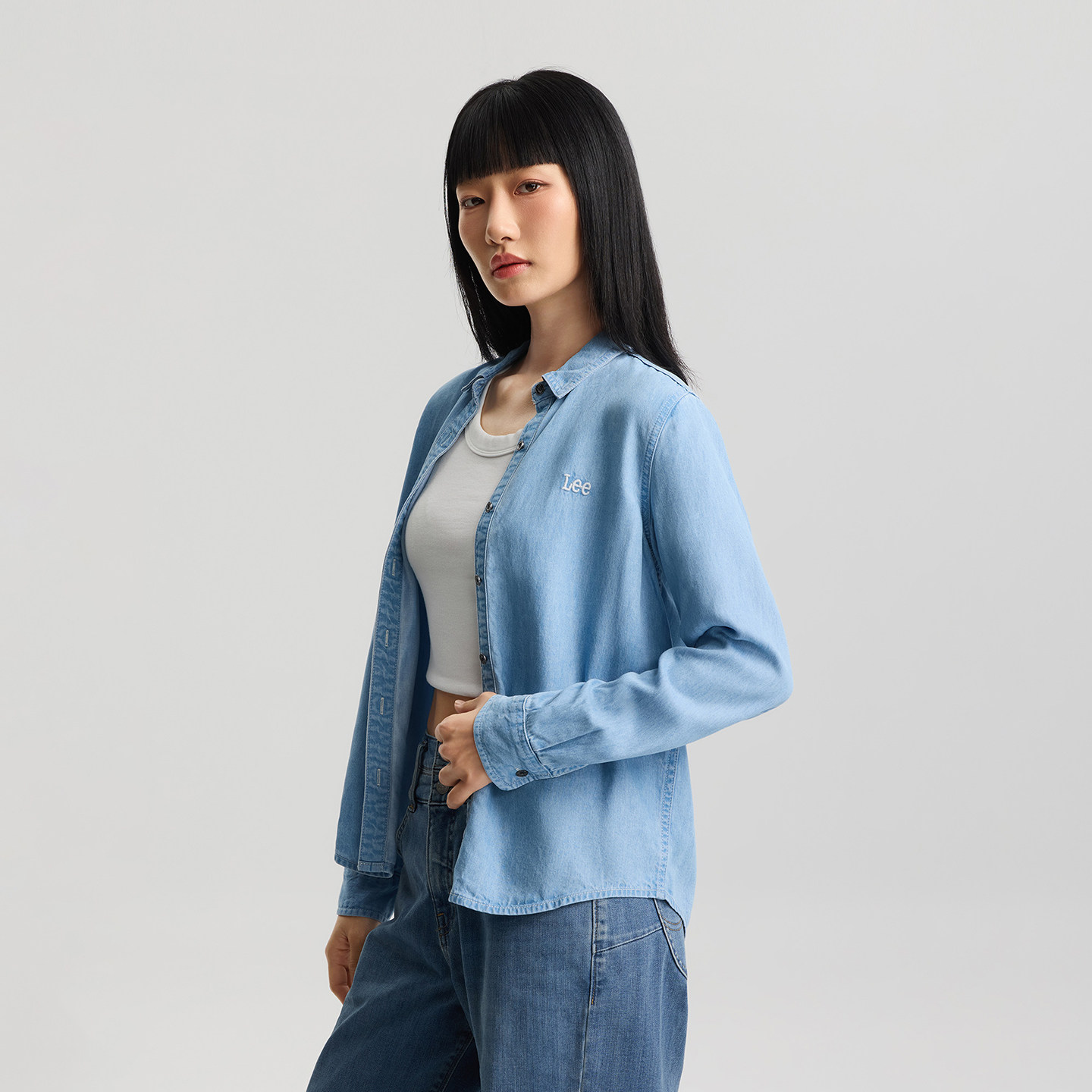 牛仔衬衫 Lee商场同款 翻领天丝浅蓝色女长袖 标准版 休闲 26春夏新品