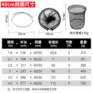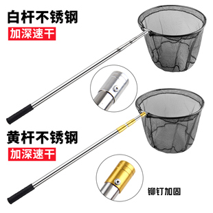 三角折叠抄网全套伸缩杆铝合金抄网竿大物超轻硬便携捞鱼网兜渔网