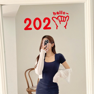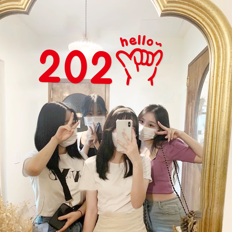 店铺自拍照镜子布置橱窗贴画 饰女装 2026手势可爱新年贴纸 圣诞装