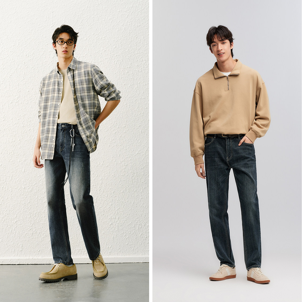 班尼路SK水洗牛仔裤 子男MS 男2025秋冬加绒加厚直筒宽松复古休闲裤