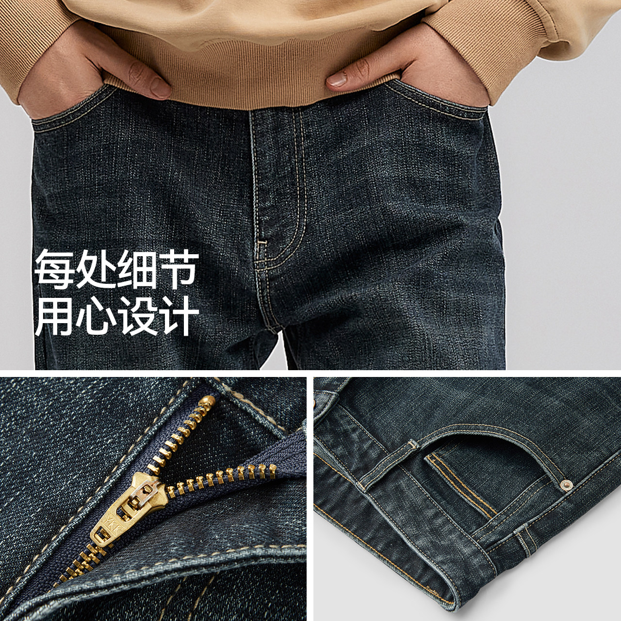 25秋冬新款 九牧王男士 直筒水洗磨毛保暖牛仔长裤 空气牛仔裤