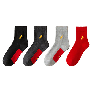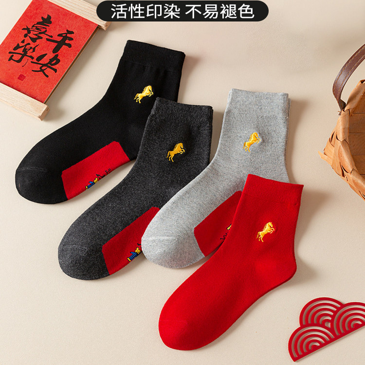 踩礼物小人礼盒 男式 2026属马年本命年袜子红色中筒袜男士 男生男款