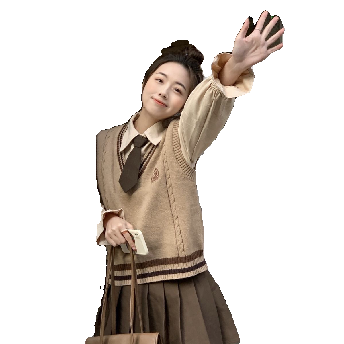 百褶裙套装 学院风毛衣马甲针织背心衬衫 女 套装 胖MM200斤特大码