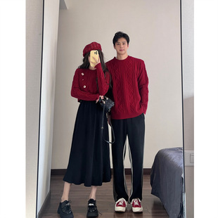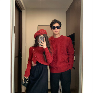 针织衫 法式 潮 秋冬ins超火毛衣连衣裙一男一女韩版 跨年红色情侣装