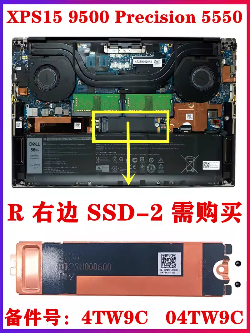 9510 9520 5560 SSD散热片 5550 9500 Precision 戴尔XPS 9530
