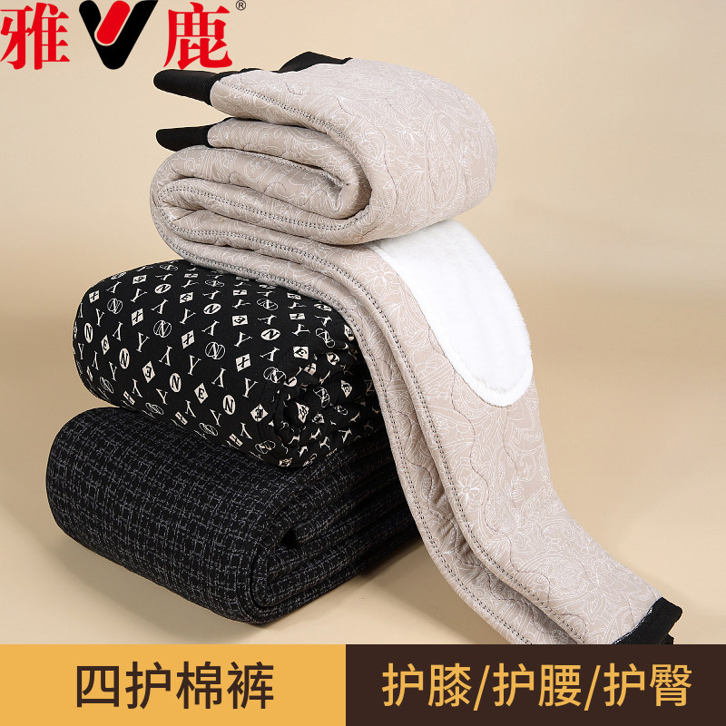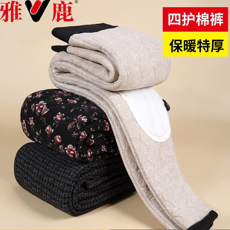 羊羔绒保暖打底裤 雅鹿妈妈加绒加厚棉裤 中老年女裤 高腰直筒裤 冬季