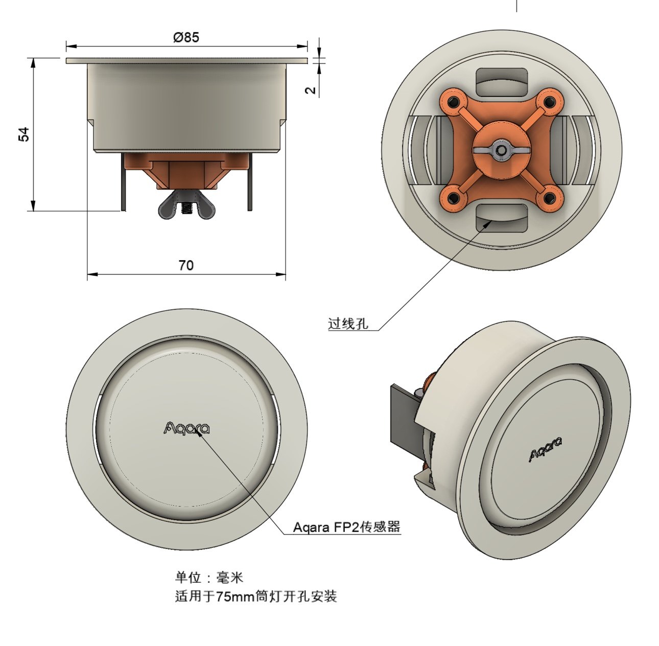 适用绿米Aqara人体场景传感器FP2人体存在吸顶筒灯安装 FP1E支架
