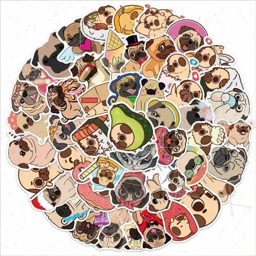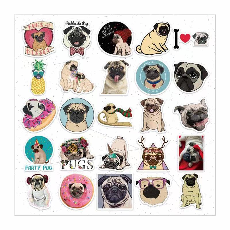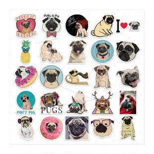 Pug Cartoon Doodle Guitar Animal Stickers Skateboard Cute