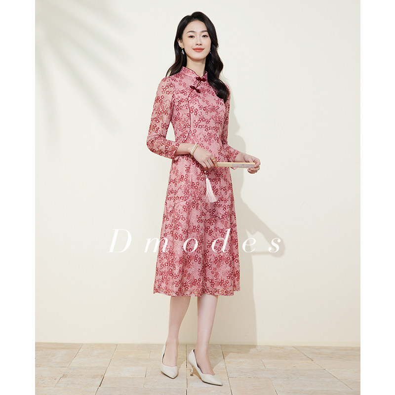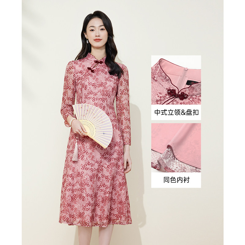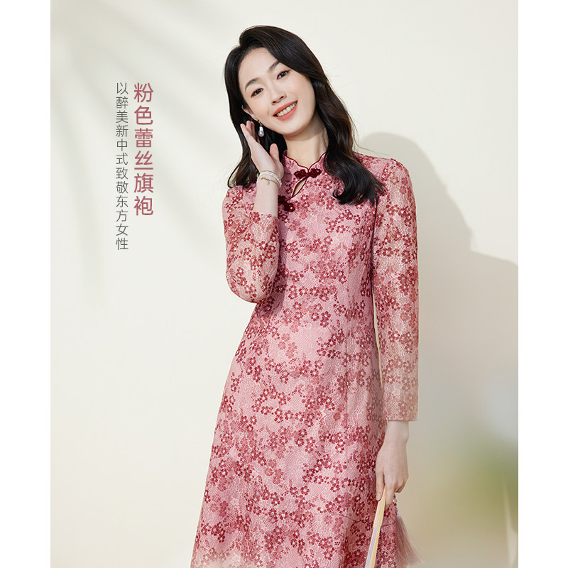 包臀长裙 性感气质修身 愉悦愉悦黑色蕾丝长袖 内搭鱼尾连衣裙女冬季