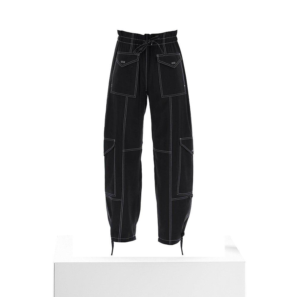trousers 香港直邮GANNI 黑色阔腿裤 F8807099 Pocket 女士休闲裤