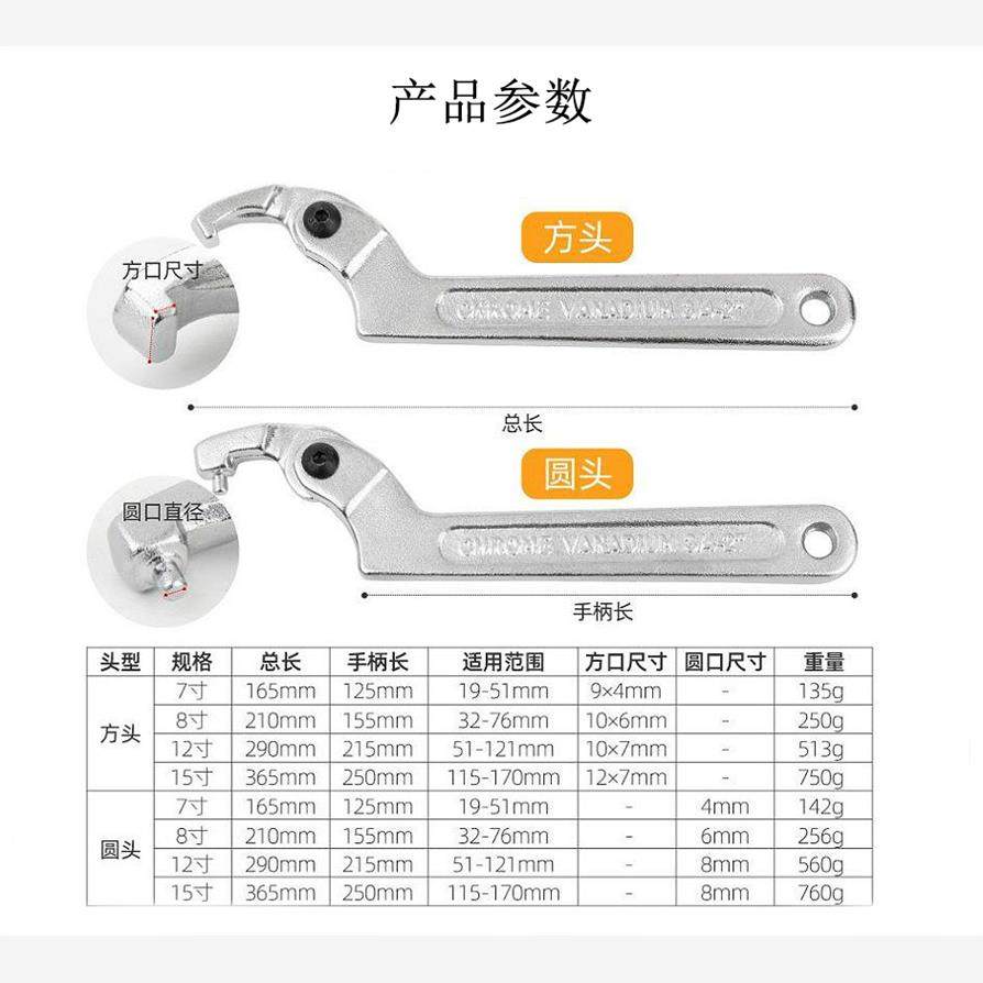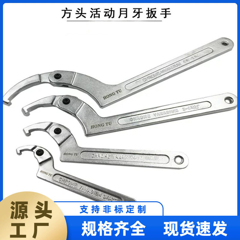 圆头月牙扳手方头可调钩型扳手勾形侧面孔凹槽活动扳手活络勾扳手