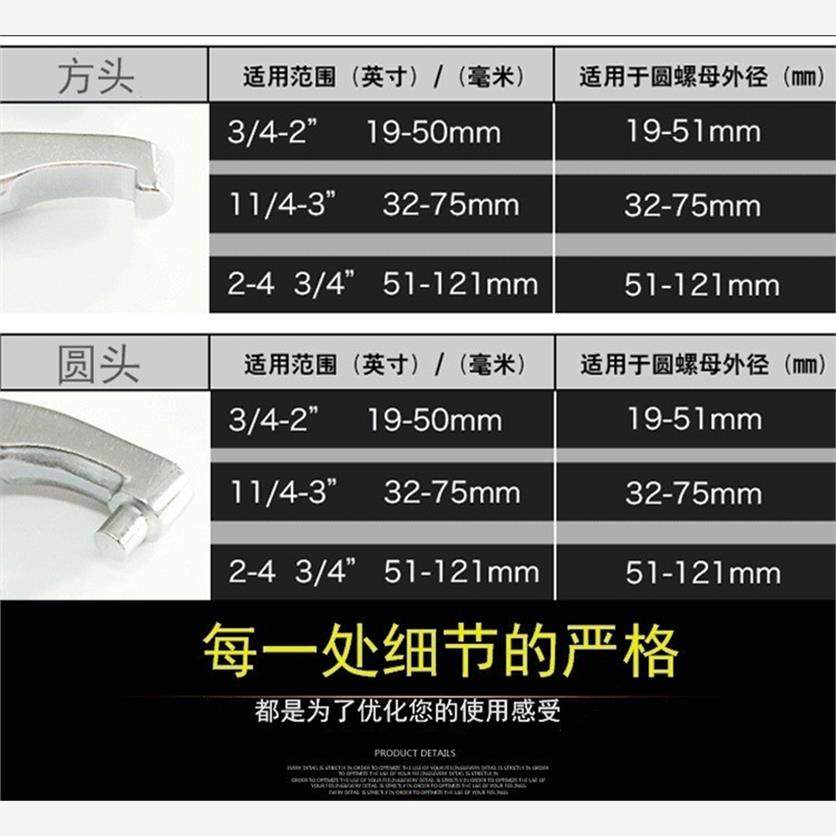 侧面孔活动扳手可调节勾型扳手方头圆头扳手锁紧圆螺母扳手