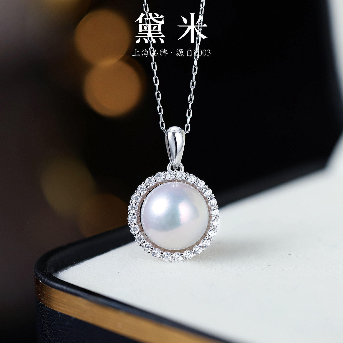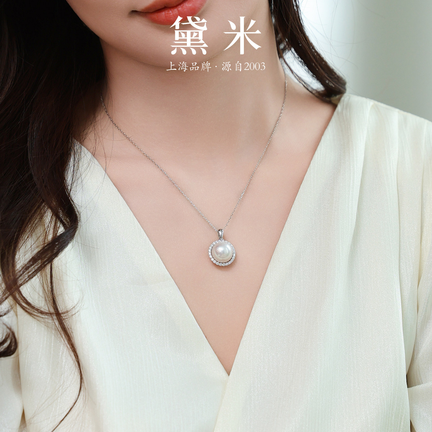 13mm圆形白色淡水珍珠项链S925银单颗大吊坠女H 黛米珠宝 星海