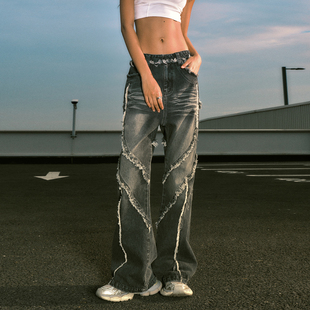 直筒水洗牛仔拼接印花女士牛仔裤 25秋冬新品 博主同款 Desigual