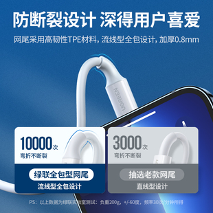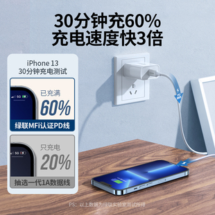 绿联lighting口充电线适用苹果iPhone11PD闪充12快充1314promax手机ipad平板20W车载正品 充电器MFI认证数据线