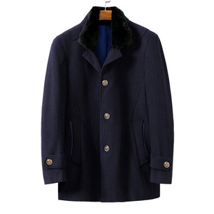 过膝加厚外套冬季 重磅老钱风双面羊毛呢子大衣男长款 风衣 储格