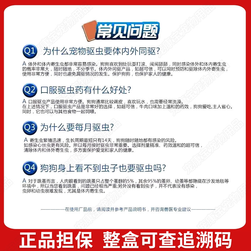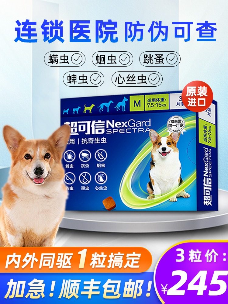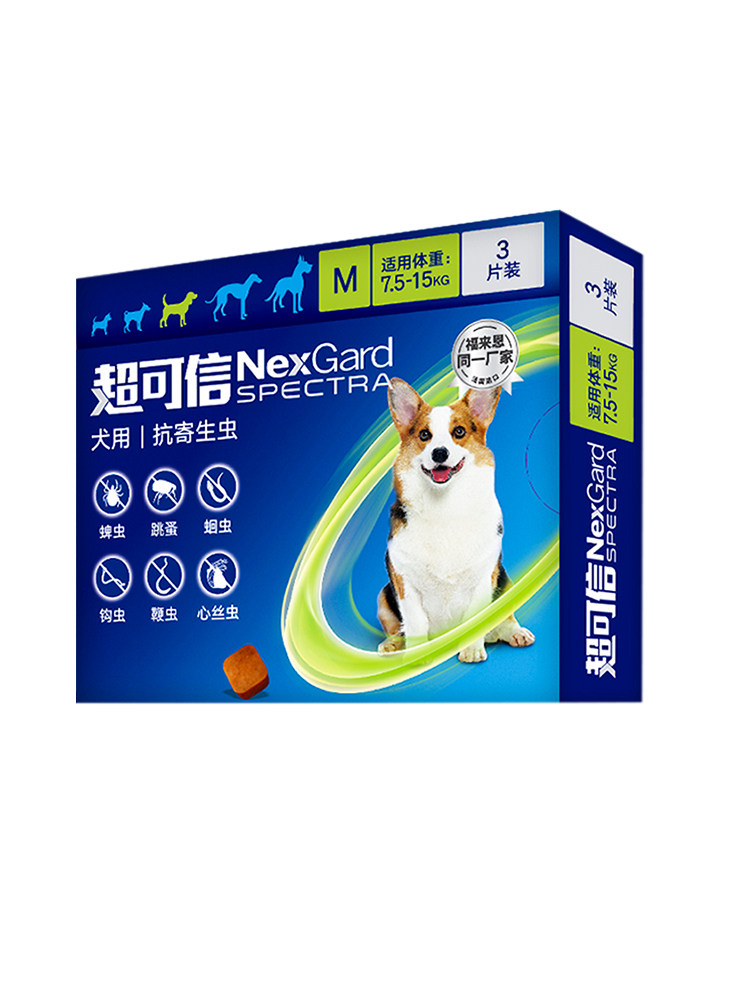 整盒3粒装 15kg超可信M犬用体内外驱虫药中型狗二合一内外同驱 7.5