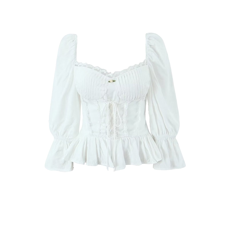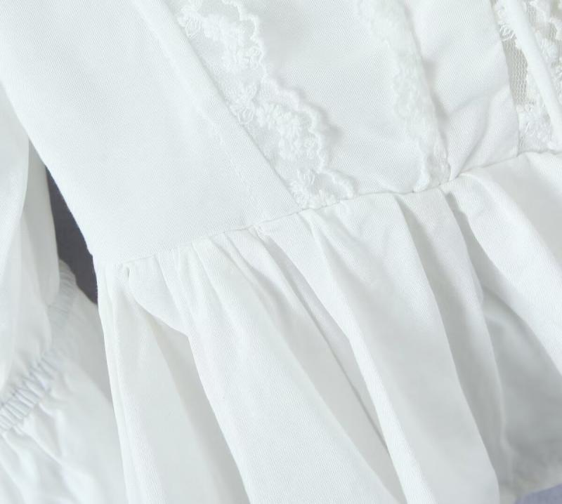 女法式 蕾丝花边绑带衬衫 白色复古泡泡袖 宫廷风方领上衣潮 包邮